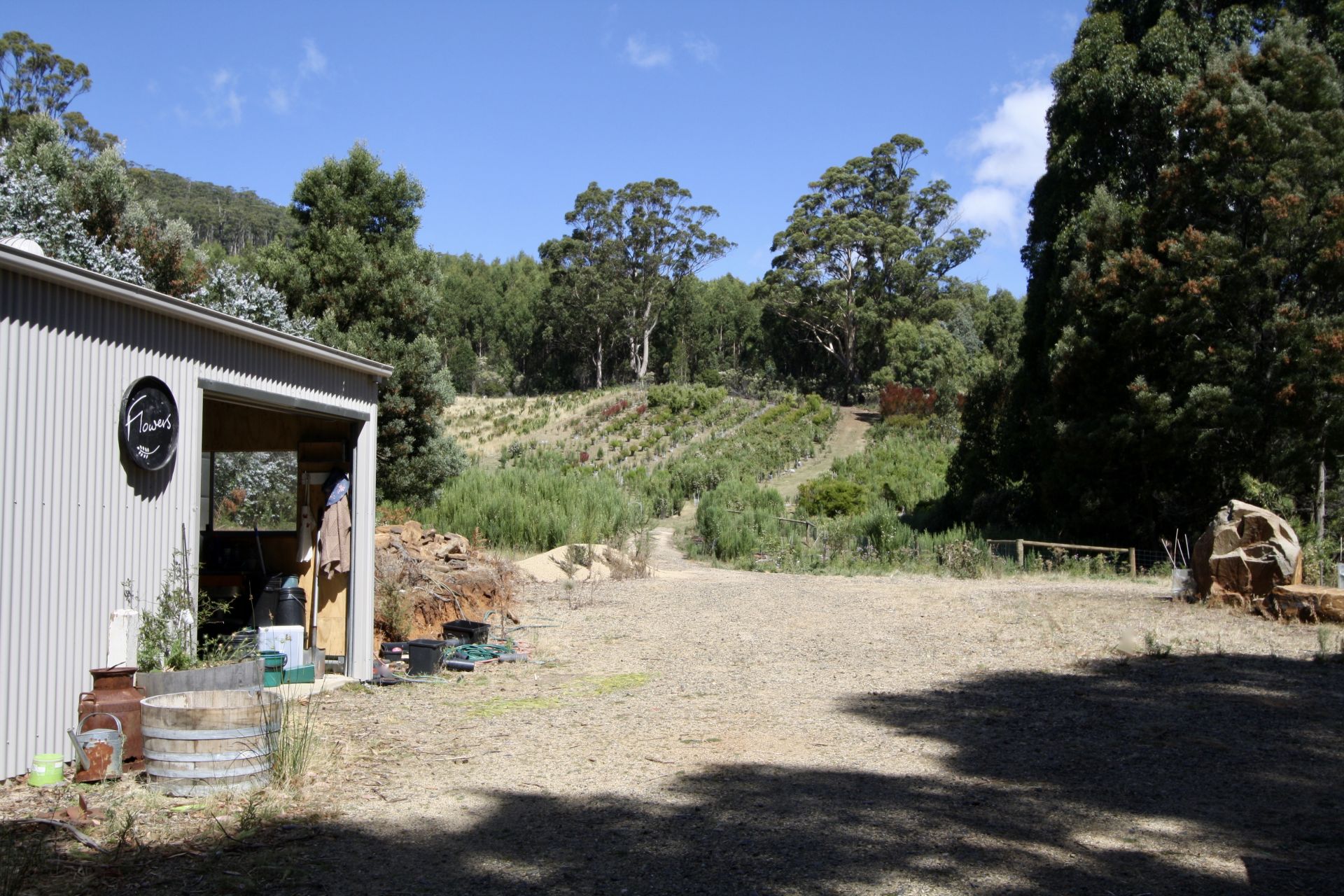 Swallows Nest Farm is a 43 acre property set in a private location with breathtaking views of southern Tasmania, from the Hartz Mountains in the south to Bruny Island, Storm Bay, Norfolk Bay and Mount Wellington and Table Mountain to the North. The current owners have cultivated a native flower farm on the property.