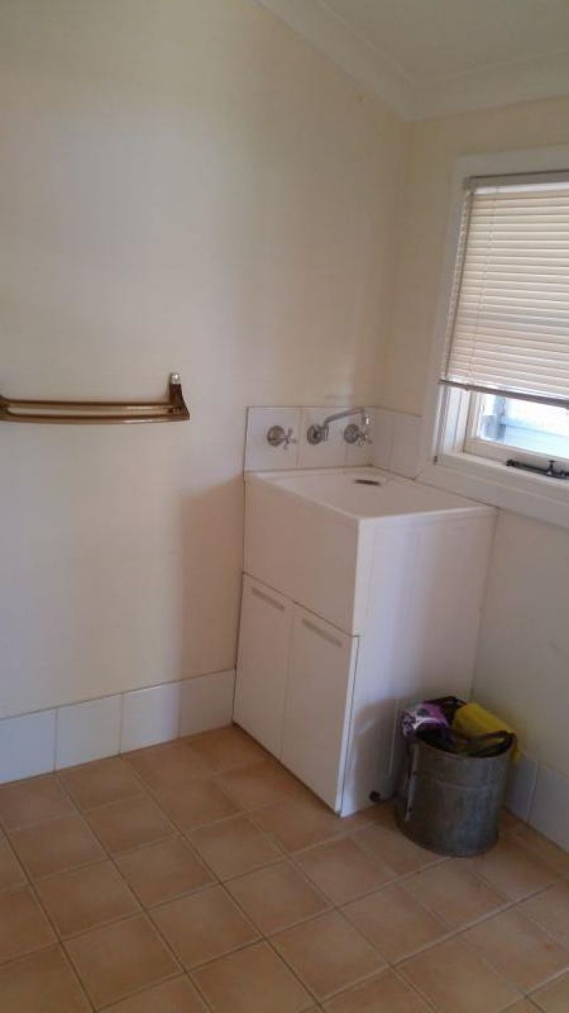 Its a 2 bedroom 1 bathroom. A huge out back patio. A large 2 roller door shed with 3 phase power for those heavy electrical tools. A garden shed n a chook yard up the back. Its connected to sewage. Very close to the town centre. Walking distance to shops bank, hotel etc....