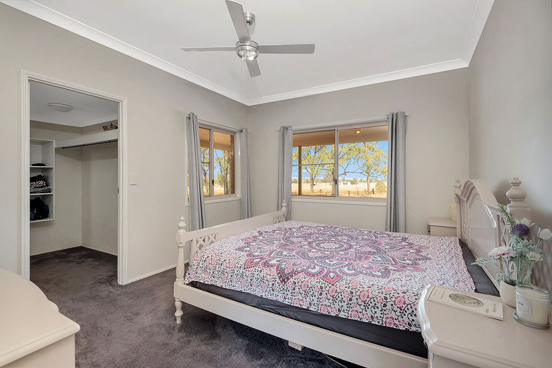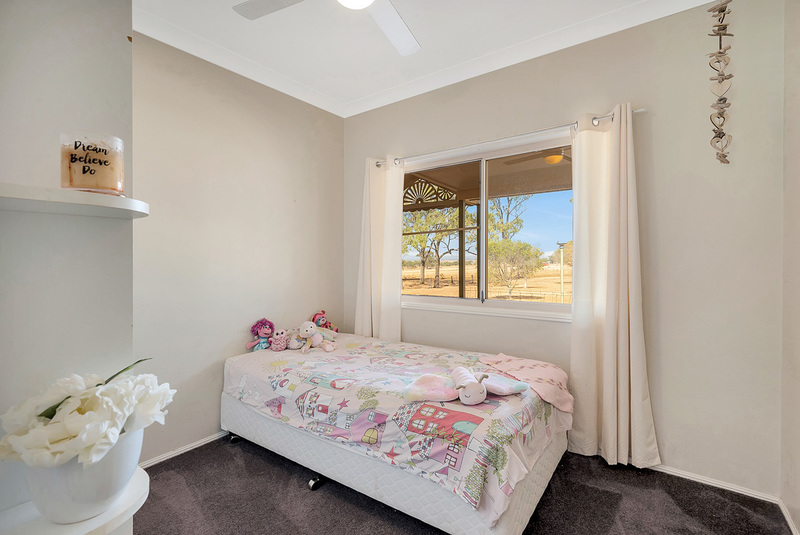 Literally just minutes from Warwick CBD, Stockman's Retreat is a gorgeous low-set brick home wrapped around by a shady verandah and beautiful scenic views. The home boasts 5 generous bedrooms, two with built-ins, main features walk-in wardrobe and spacious ensuite, all with fans.