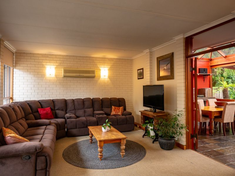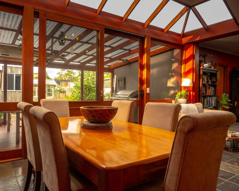 A separate expansive lounge room with reverse cycle heat pump leads through into a north facing sundrenched atrium-like formal dining and living area. Here there is also a centrally located wood heater to warm the whole home on a cold winters night.
