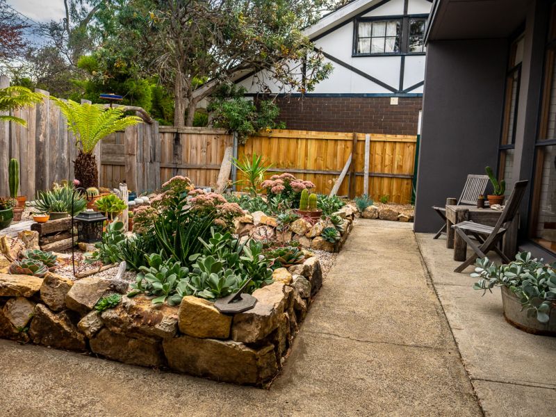 The backyard greets you via large glass siding doors with a generous undercover deck ideal for all year entertaining, surrounded on one side by large manferns and the other with a colourful cottage garden . Also here, in close proximity to the home is a handy, fully carpeted studio/teenagers retreat providing extra living space or visitor accommodation. There is also a useful 3m x 3m storage shed off to one side . As you venture further out in to the backyard , you will find a gardener's paradise ! There is a herb garden, fully enclosed and extensive vegetable garden with raised beds and citrus trees. To top it off, there is a quirky and unique 4m x 3m hothouse .