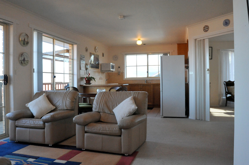 This sunny home has two bedrooms with built in robes, a living /dining area, kitchen, large lounge room, bathroom and toilet all on the upper level. A partially covered timber balcony, which has room for a BBQ and seating, can be accessed from the living area via a sliding door. The bathroom has a separate shower and bath and has doorways leading in from both bedrooms.