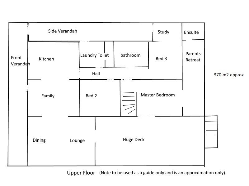 Upstairs has 3 bedrooms, kitchen, family, dining, lounge, laundry / toilet, study, ensuite, parents retreat and 3 decks.