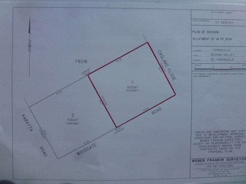 This is an almost square, gently sloping corner block of 1032 sq.m. (Block No. 1 on plan), offering a quiet lifestyle on the outskirts of the rural seaside village of Second Valley with it's beach, jetty and kiosk. It is situated aprox. 15 minutes drive from the schools, shops, beach and other anemities of Normanville/Yankalilla and about 90 minutes from the centre of Adelaide. Also within easy reach is Cape Jervis for the Kangaroo Island ferry and the start of the Heysen Trail.