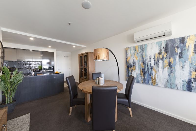 Spacious and bright living areas are awash with natural light and the whole apartment is equipped with climate controlled reverse cycle heating and cooling.