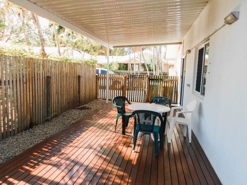 This large modern two storey townhouse consists of two built in bedrooms upstairs with adjoining bathroom and separate toilet. Downstairs is an open plan good sized kitchen/dining and lounge room, plus 2nd toilet and separate laundry. This lovely unit has been recently renovated with a modern well appointed kitchen, including dishwasher and has new paint throughout the entire unit. Tiled throughout the downstairs areas as well as wet areas upstairs, and carpet to the bedrooms. There are fans and split system air-conditioners throughout. This unit also has a very private and spacious covered deck and courtyard area, plus a single remote lockup garage and storage room. Only four units in a very quiet complex, and handy to just about everything. Currently tenanted for $350.00/wk