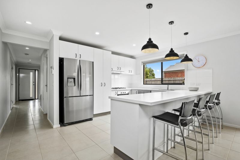 This beautiful, modern family home awaits your love and laughter. Built with ease of living in mind, the home flows from the master bedroom, with walk through robe and ensuite, past the formal lounge, through to the large open plan living area. This family area opens up to the backyard and a covered pergola. Large windows and a sliding door allow natural light to filter through, enabling supervision of children in the yard and making entertaining a breeze. Two further bedrooms with built in robes are serviced by the modern family bathroom. The double garage at the rear of the property lends itself to become an extension of the covered entertainment area and provides secure access into the home. Situated in a quiet street, on a corner block, in the family friendly suburb of Bannockburn, this home is surrounded by all the conveniences required for simple holistic living. Several day care facilities, schools, shopping centres, cafes, restaurants and public transport surround the home. Ease of access to the larger cities of Geelong and Melbourne is via freeway. If a tranquil environment is your thing, you are blessed with natural parklands and tree lined creeks within walking distance, allowing for peaceful evening strolls and weekend picnics. With comforts such as feature lighting, air conditioning and a dishwasher, this beautiful home awaits your inspection and personal touch. Don't let this one go!