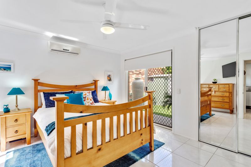 Main bedroom boasts an en-suite, reverse cycle split system air-conditioning, sliding door to back yard, TV aerial point and large mirror built-ins featuring more hanging space and shelving than the typical walk-in-robe!