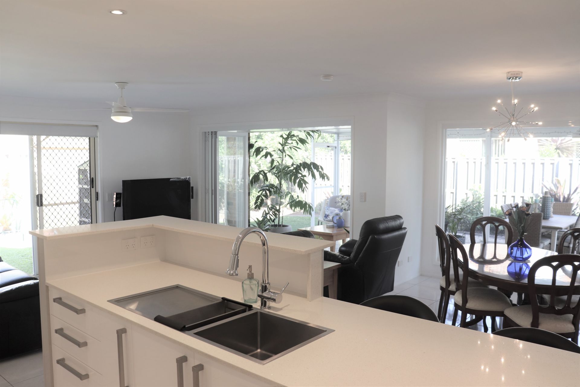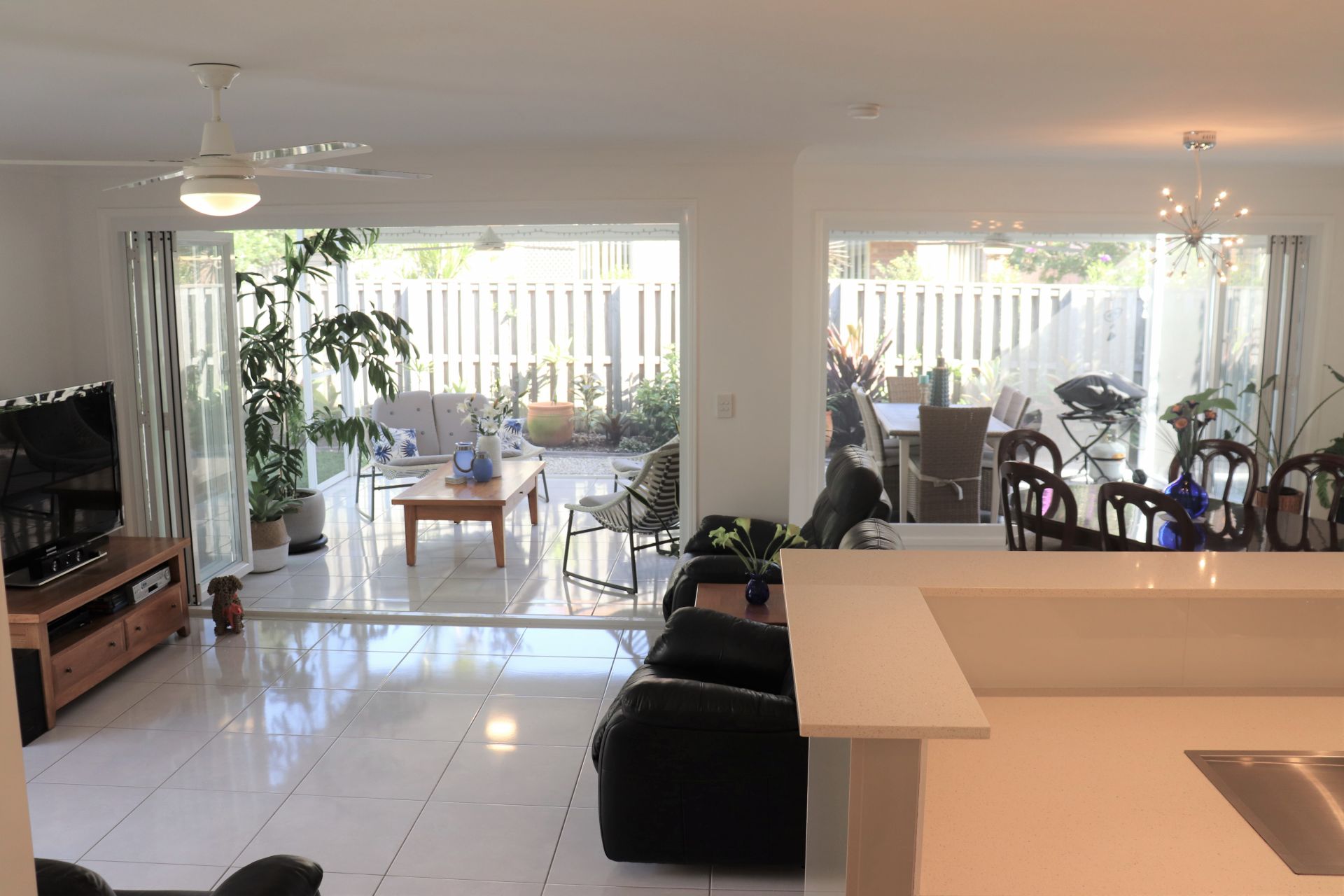 The piece de resistance of this beautifully renovated home is the stunning, newly built outdoor entertaining area. The new bi-folds from the family room open into the fully screened area giving extra living space, free flowing air all year round and a magical ambience when the candles are lit at night!