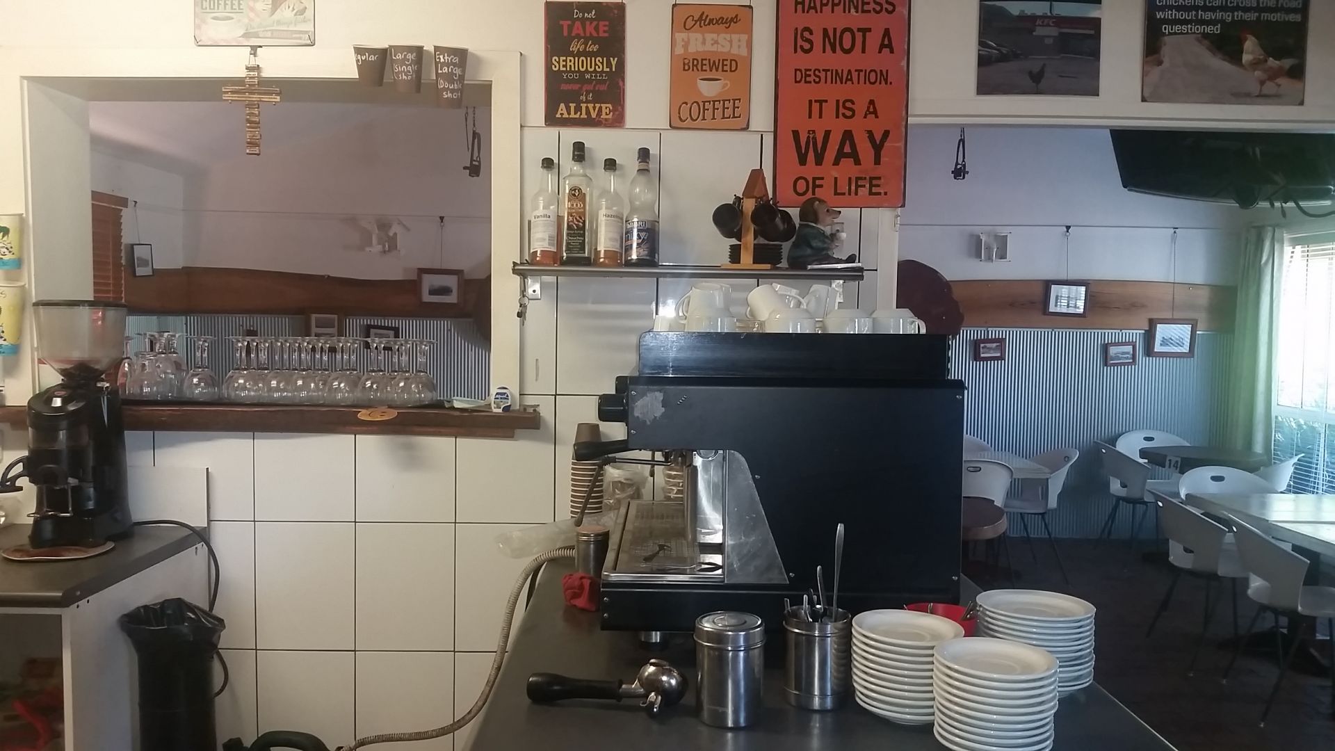 Cafe is fully set up to run any type of restaurant you choose. Asian , Indian Italian .The choice is yours. Deep frier, large four burner commercial gas stove plus large hot plate.Two door commercial pizza oven, large walk in cool room. ( serviced in January ) commercial dish washer, all stainless steel benches and prepping area. Near new two station coffee machine.