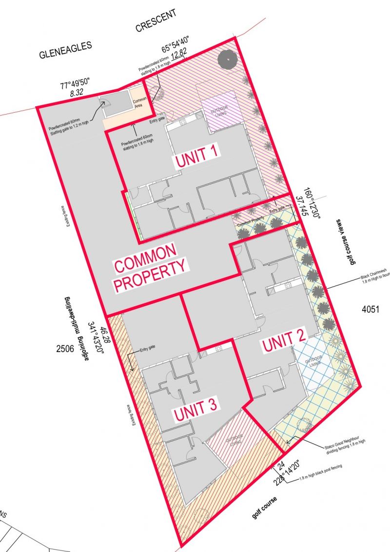 Off the living room you have a private outdoor undercover patio complete with fan and lights. From this patio you can fully enjoy the serenity of having permanent green space as your neighbour and relax as you watch the birdlife enjoying the abundence of open fairways and trees. The surrounds are peaceful and the cool breezes and magnificent views from units 2 and 3 across the fairways and beyond will impress.