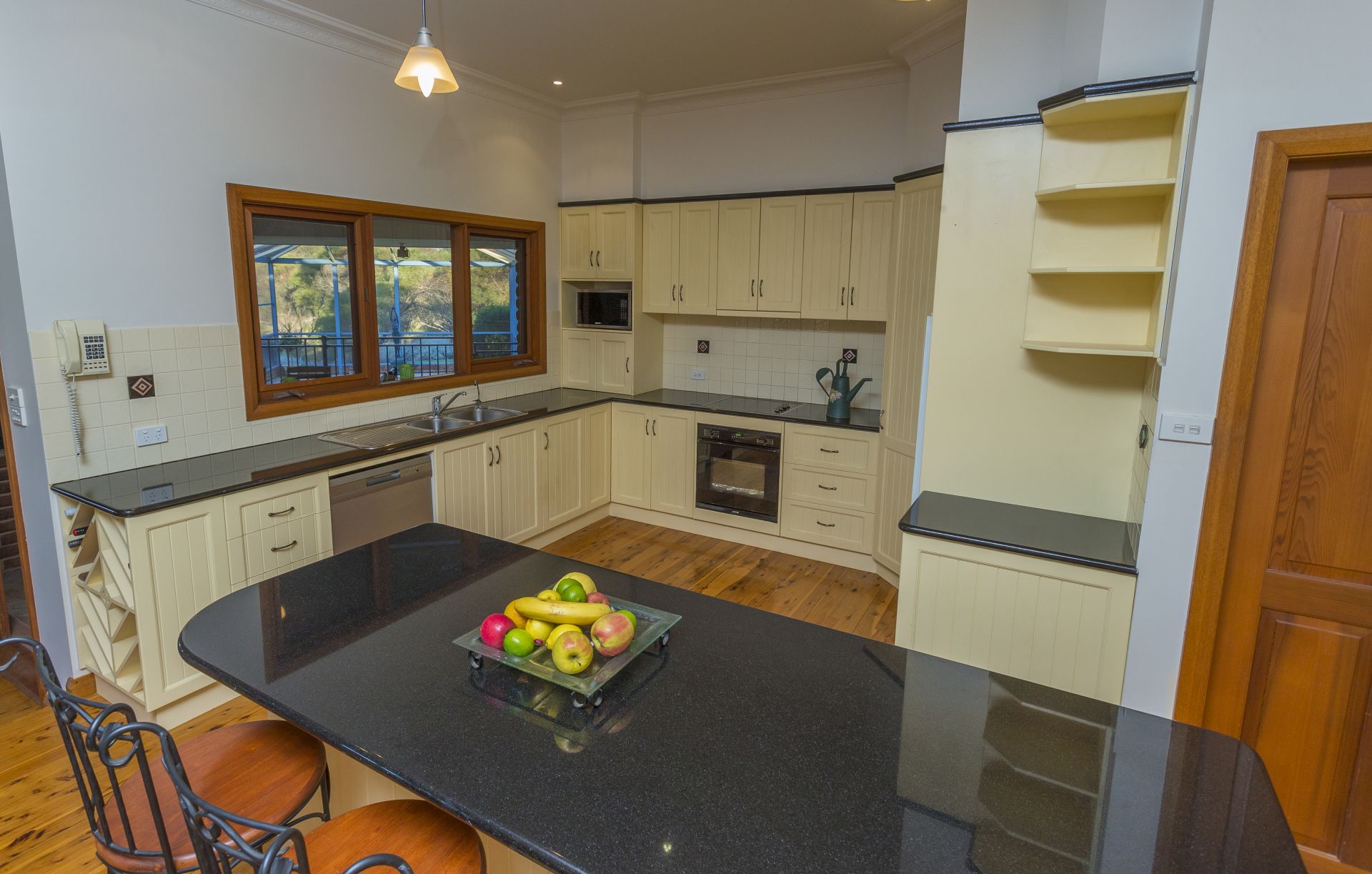 360 degree views from every aspect of the house with sweeping verandahs. Every bedroom has french doors opening on to the verandah. The house is situated on the hilltop with 1.50 hectares of flat land at the bottom of the block adjoining Mcpherson Road.
