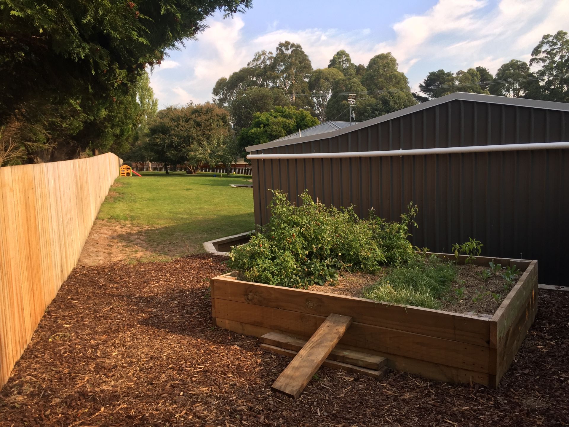 - New fencing, retaining walls and raised veggie bed.
