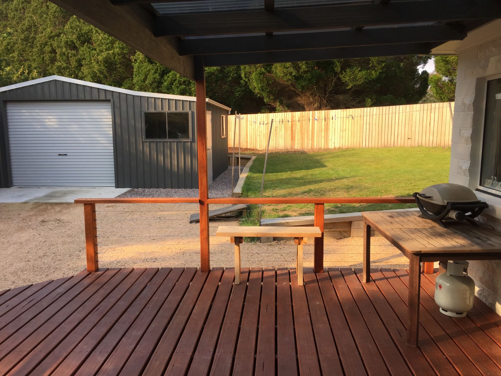 - New, large hardwood deck with a covered verandah flowing off the lounge, providing a lovely sunny and private spot for outside living;