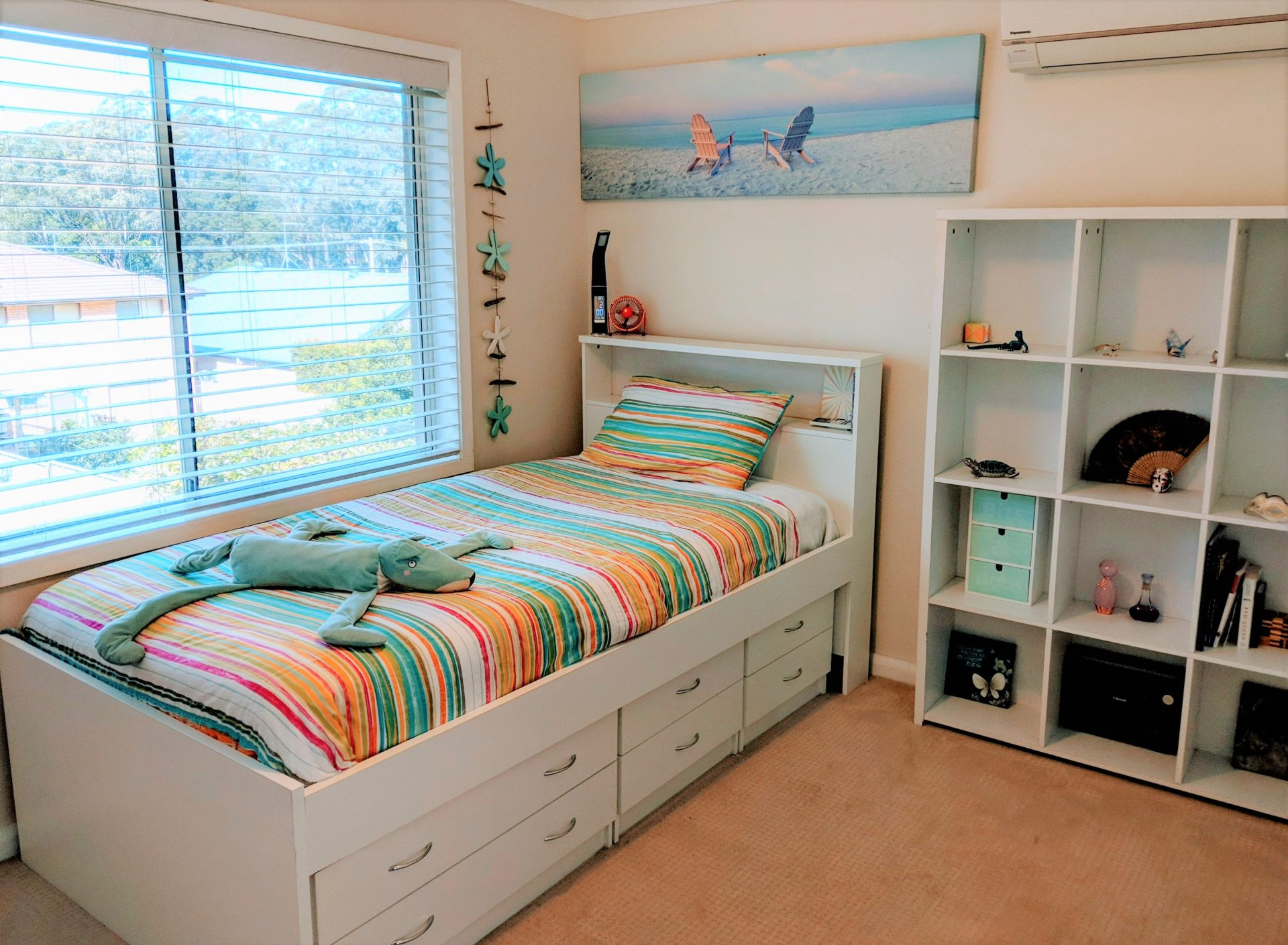 Bi-fold glass doors open from the air conditioned living area onto a large covered timber deck, perfect for inside/outside entertaining. What sets this home apart is that the deck overlooks a large, sunny, fully fenced and landscaped yard, providing plenty of room for kids' sports, games and pets.