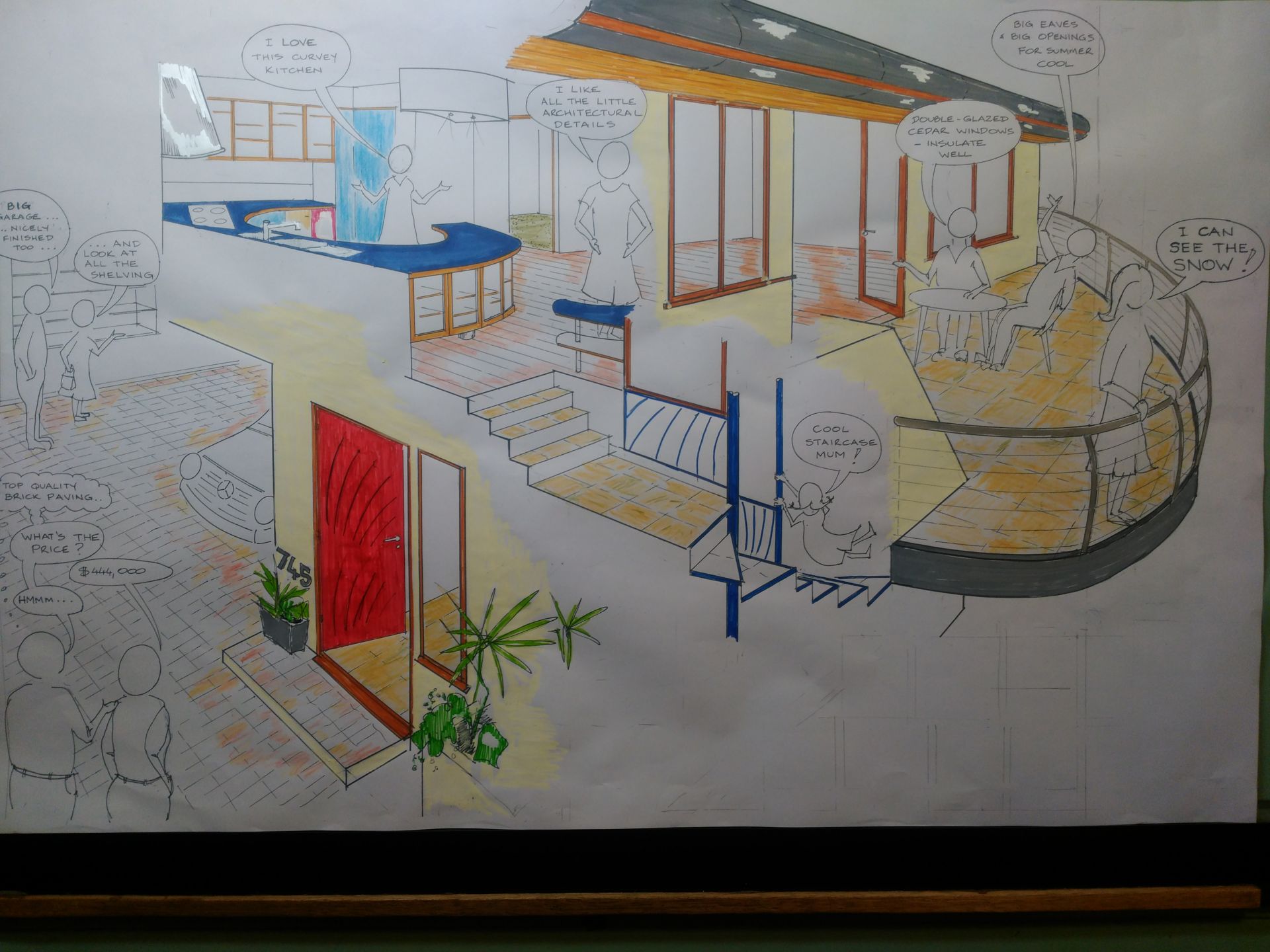 Paired casement windows open wide for summer breeze. They are double glazed for winter warmth. Thermal (and acoustic) insulation have been given close attention. Heating and cooling are by reverse cycle. The development is all electric - addition of solar panels would potentially reduce energy bills to zero.
