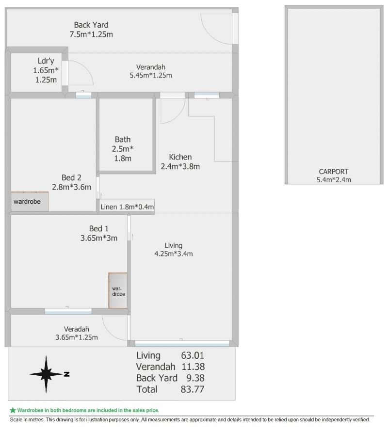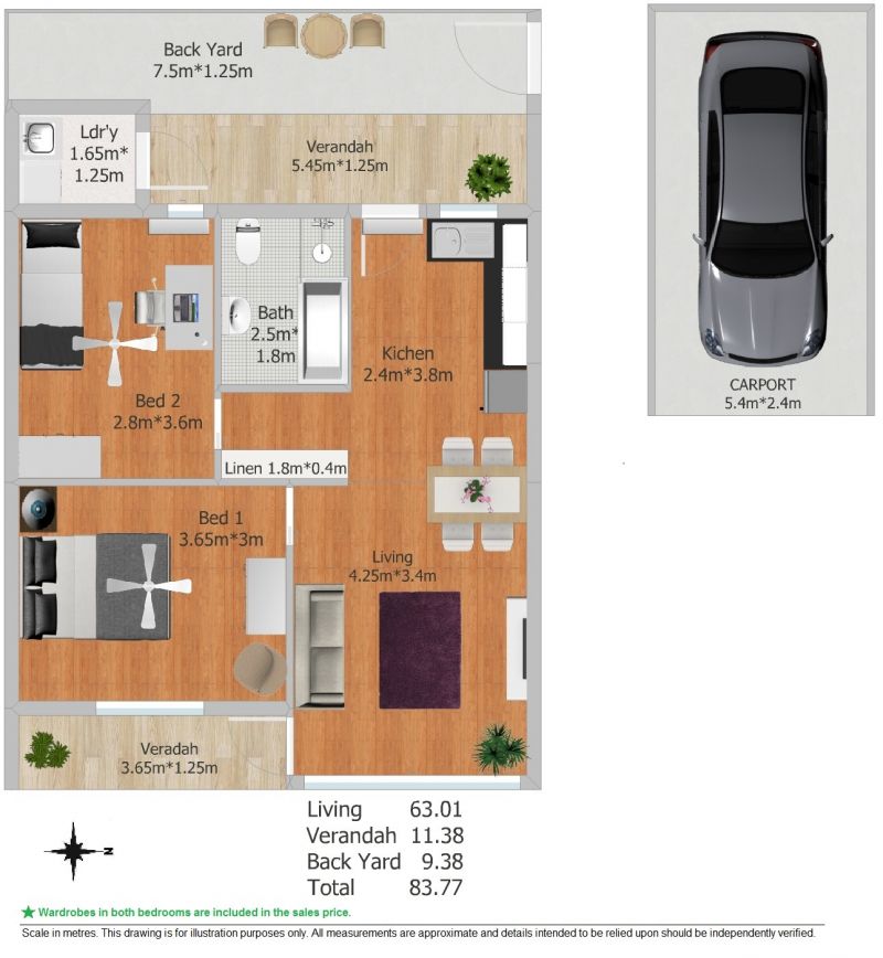 * Two large bedrooms with ceiling fans have wardrobes included in the sales price
