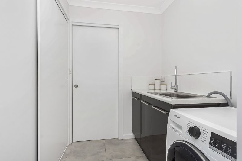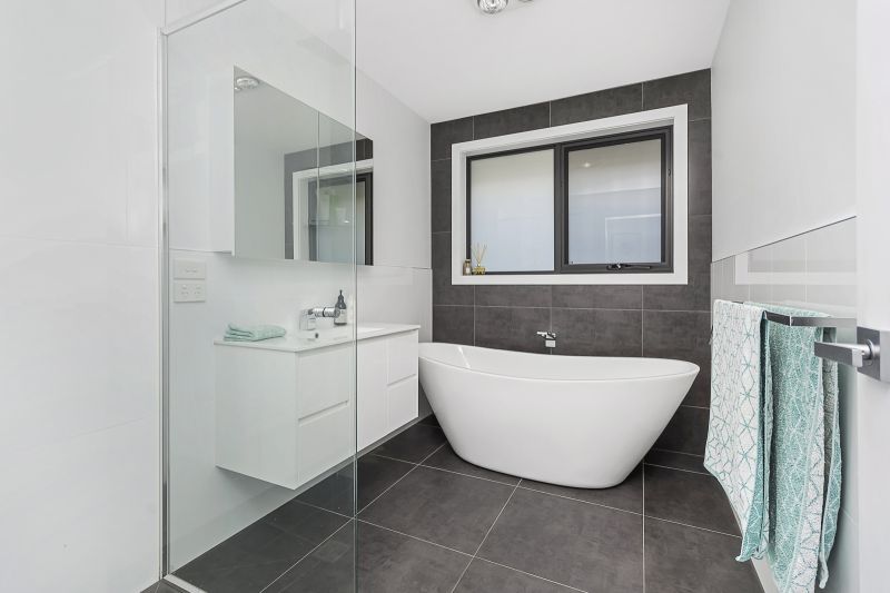 The main bedroom features a walk-in-robe and a large ensuite with double shower, while the second and third bedrooms both feature built-in robes. The main bathroom has shower, vanity and a free standing bath with soft curves to make it the perfect centrepiece to relax in.