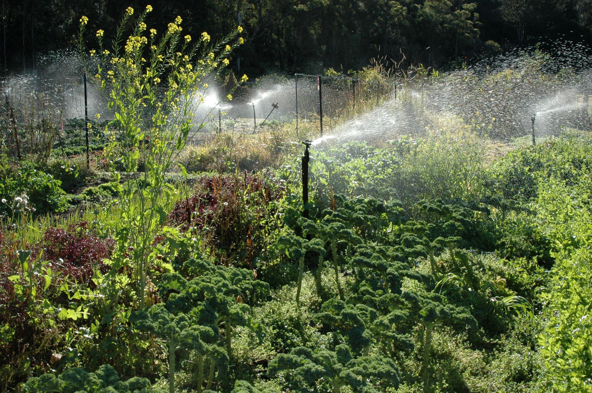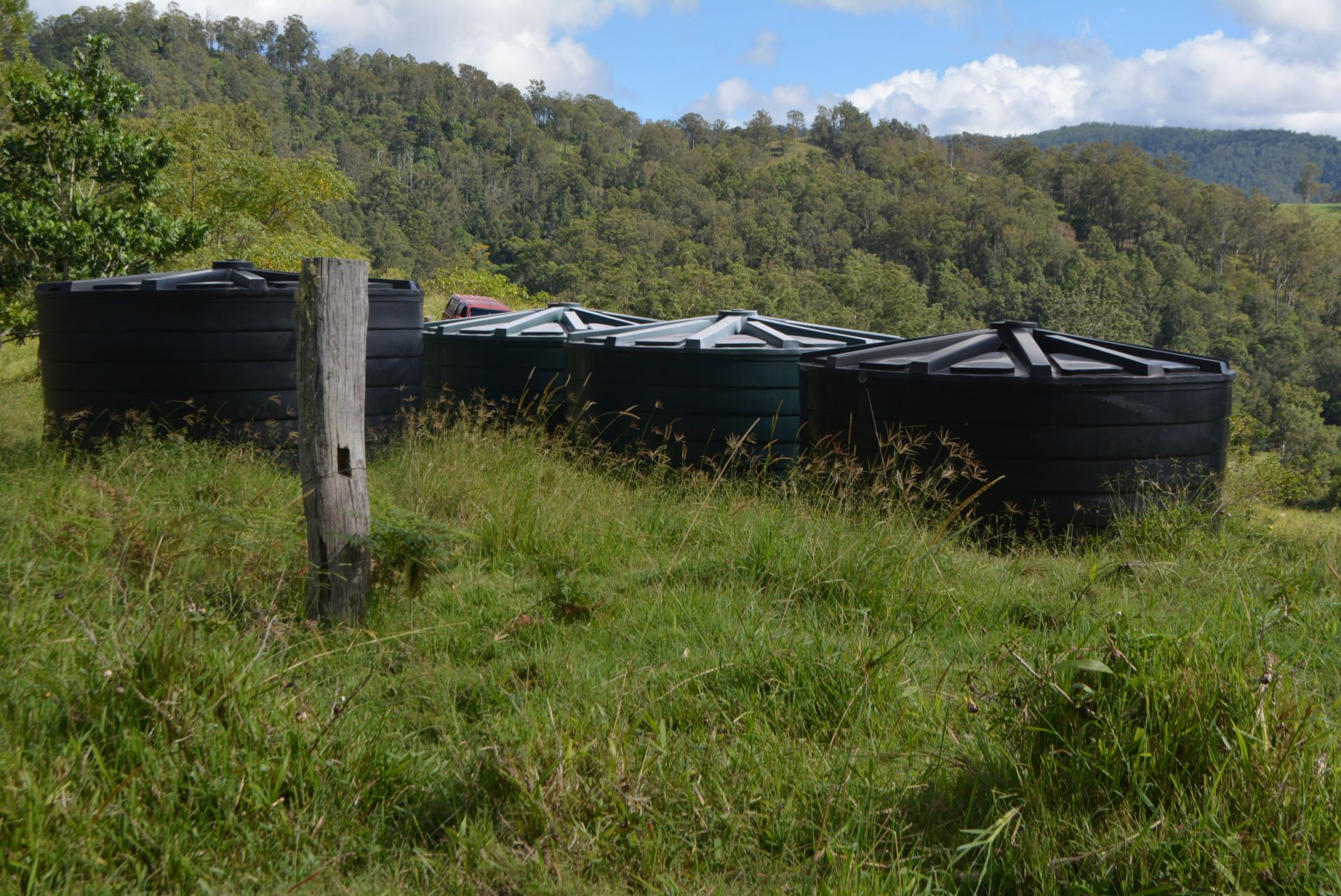 THREE x 5,400 gallon (20,000 litre) water tanks for market garden = 60,000 litres, which is serviced by solar, submerged pump in creek.