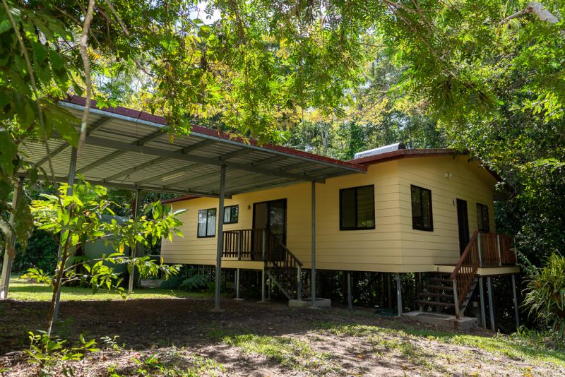 Right at the Top of the Range on Black Mountain Road, about 2km from the highway, is this lovely 3 bedroom home on 7.9 acres of gorgeous rainforest. Acreage properties of this size are hard to come by in Kuranda and this property has 2 permanent creeks and a large dam. The house has mains power, mains water, solar hot water system, large double carport and a very large water tank if you want to irrigate your garden with rain water.