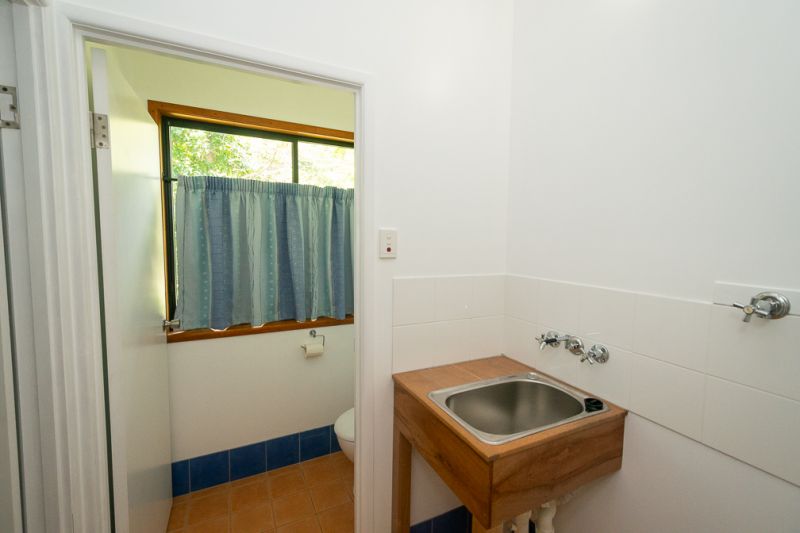 The main bedroom has a built-in wardrobe, the bathroom has a large shower and separate toilet. The kitchen has gorgeous solid timber cupboards and benchtops. One set of windows from the kitchen opens out over the servery to the spacious veranda. There are polished timber floors throughout and tiles in the bathroom area.