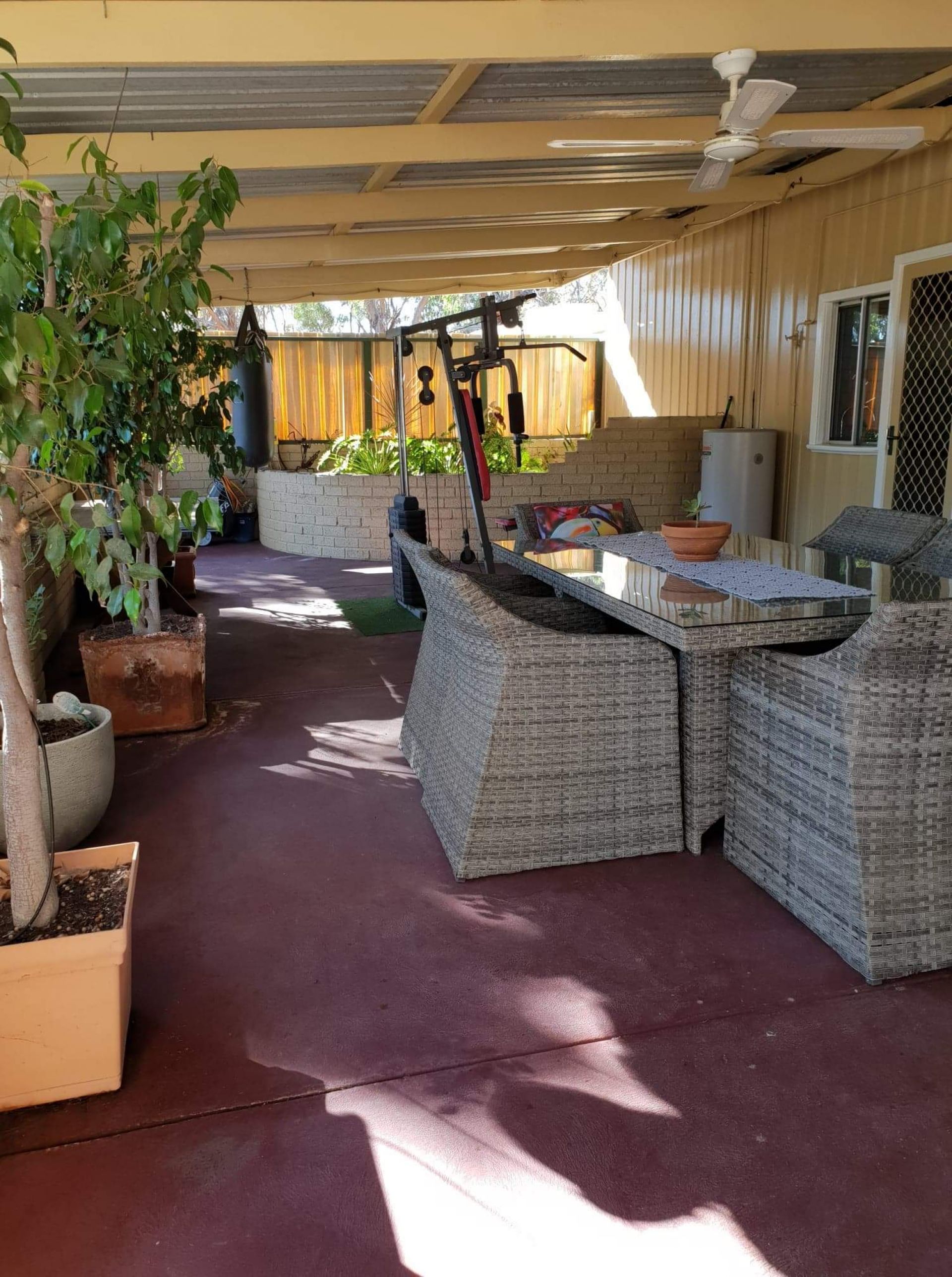 A fully fenced grassed yard secure for your pets and children to play. A vegi garden all set up ready to grow all fresh vegetables summer and winter.