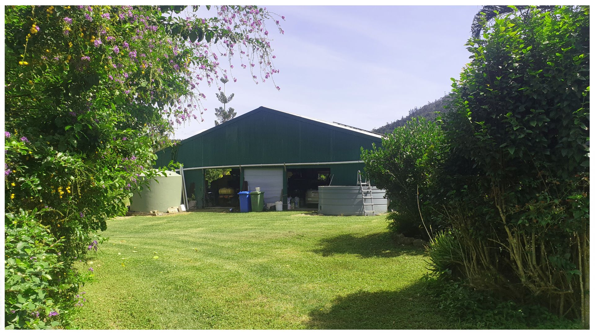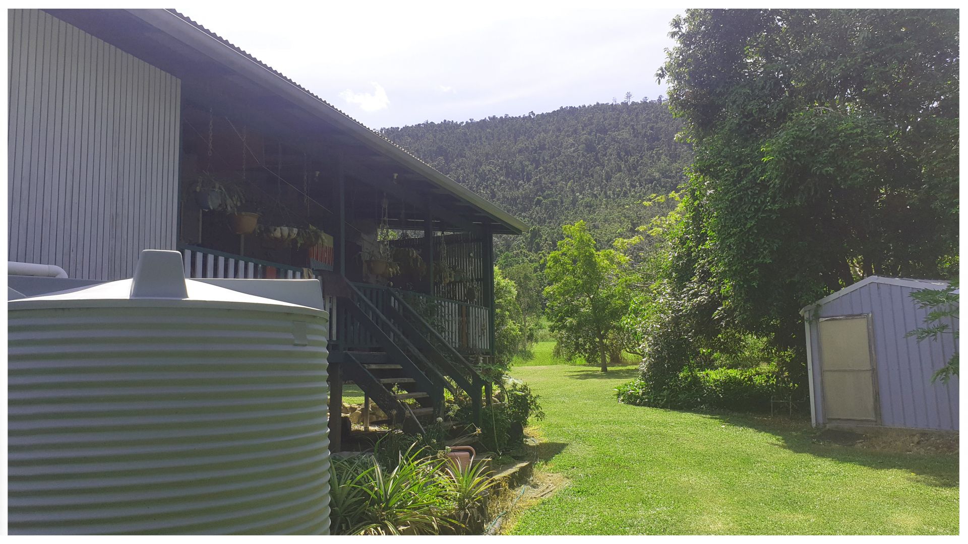 Water is no issue on this property with two rainwater tanks and a very clean and plentiful bore that is also connected to a large pipe network that feeds into the main tank to keep the tank full during dry times and to irrigate the many gardens, veggie plot, orchard and the various other fruit trees such as Avocado, Star Apple, Orange, Chilli, Mandarin, Mango, Passion-fruit, Papaya happy and healthy.