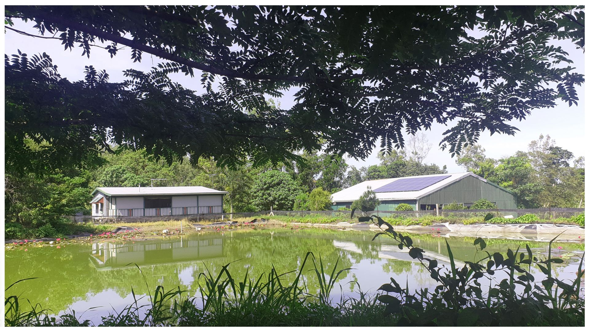 To risk leaving the best for last, the house sits on the banks of a large dam/lagoon with an island, surrounded by native trees and shrubs, and a 99.9% cane toad proof fence. The fence prevents the toads from accessing the water and therefore stops the breeding cycle.