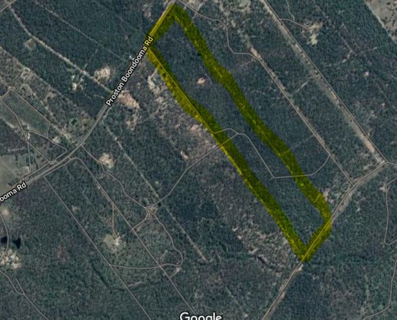 100 acres - fully fenced - timbered block - cleared house site - 60 km to Kingaroy and about half an hour from Lake Boondooma.