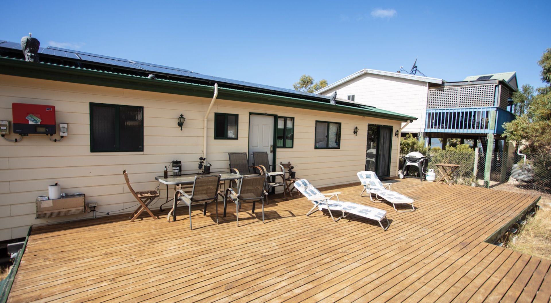 With two 27,000L rainwater tanks plumbed to house, underground septic, and roof mounted solar, as well as mains hookup, all amenities are provided. Three bedrooms, a large living area, and bathroom with spa bath will accomodate whole families.