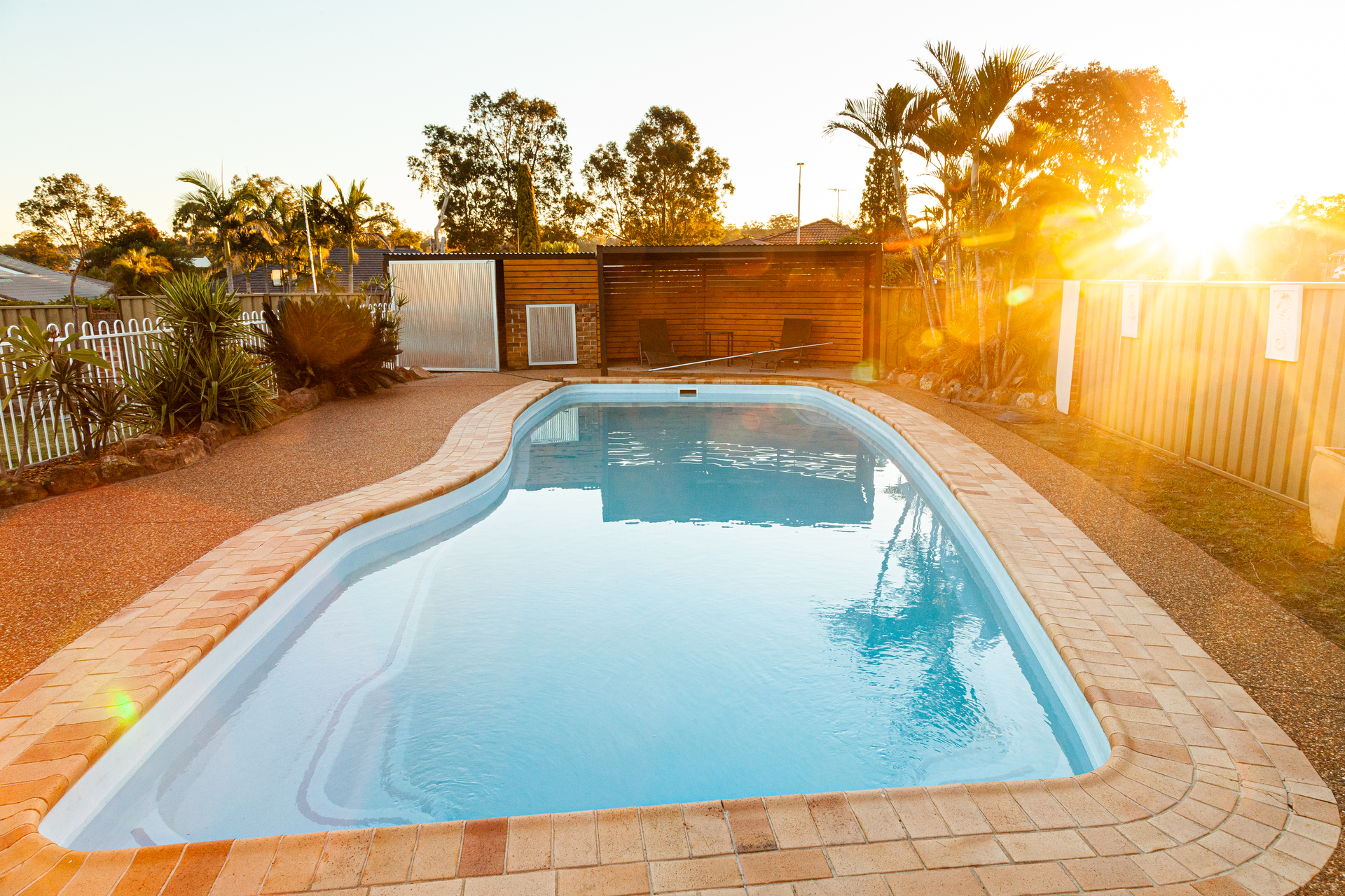 12.5m inground pool with a covered entertaining area and storage for your pool equipment