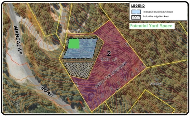 • Remainder of the block is 6725m2 (1.66 acres) - Environment Covenant shaded in purple.