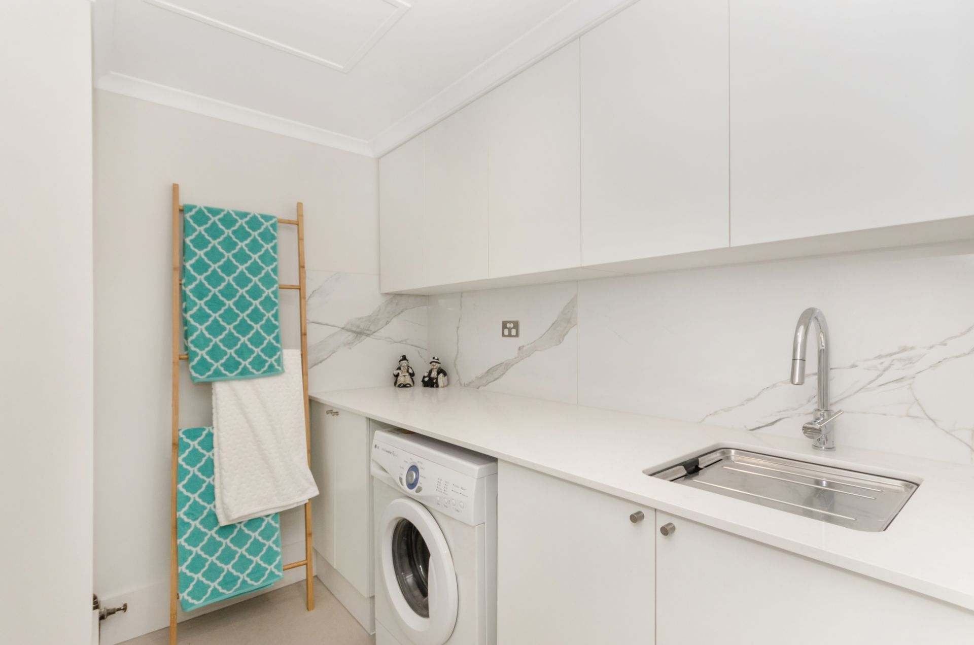 Separate laundry with stone benchtop, adjacent to kitchen (use as a Butler's Pantry)