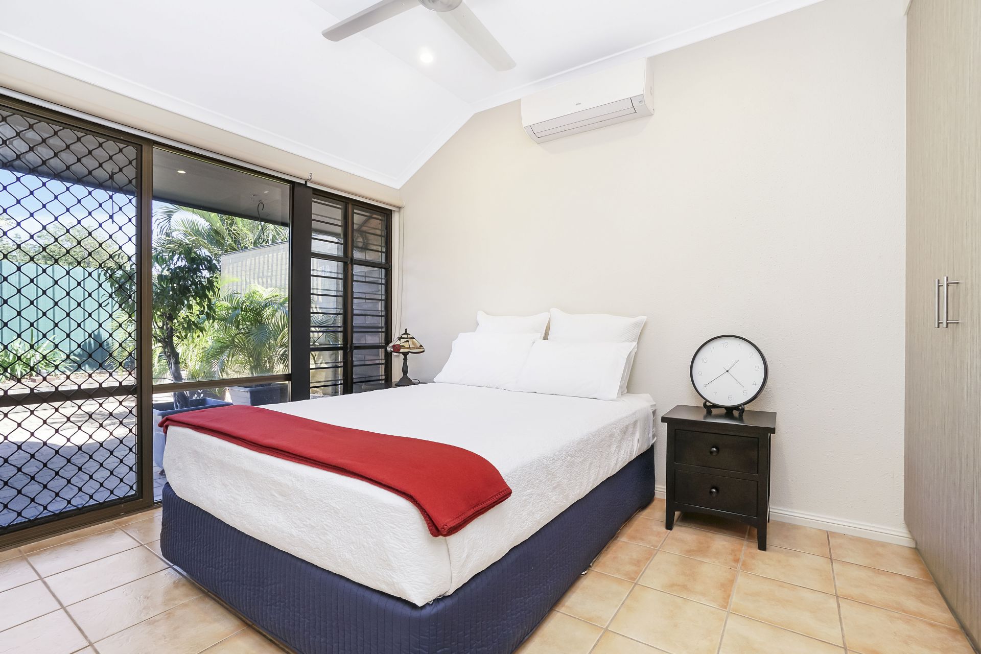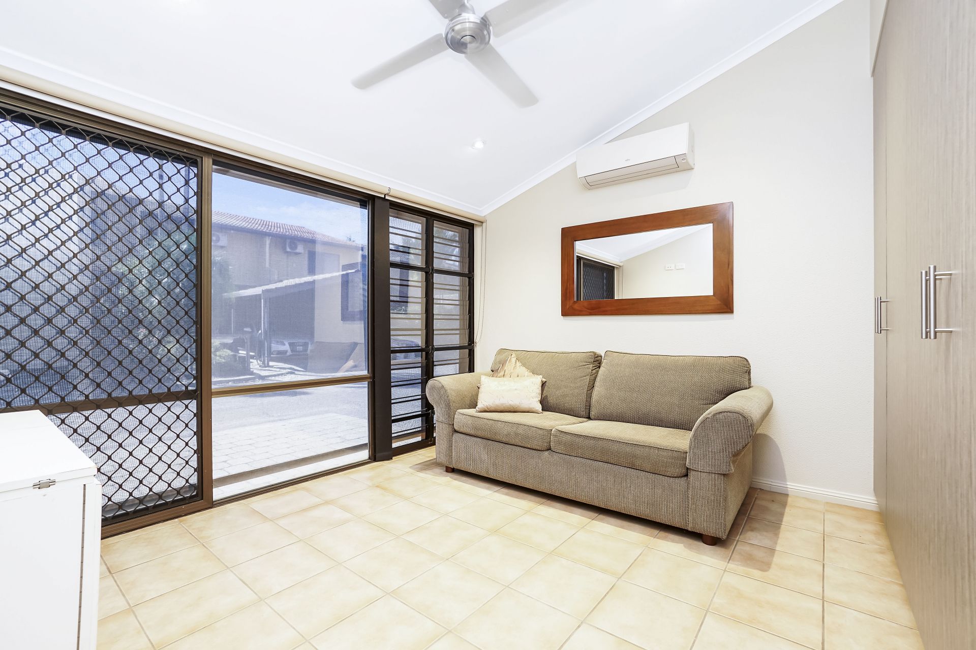 Windows are a combination of louvres and sheet glass, covered with tinted safety film and fitted with security bars. Blockout roller blinds are installed throughout. All external doors have security screens and deadlocks.