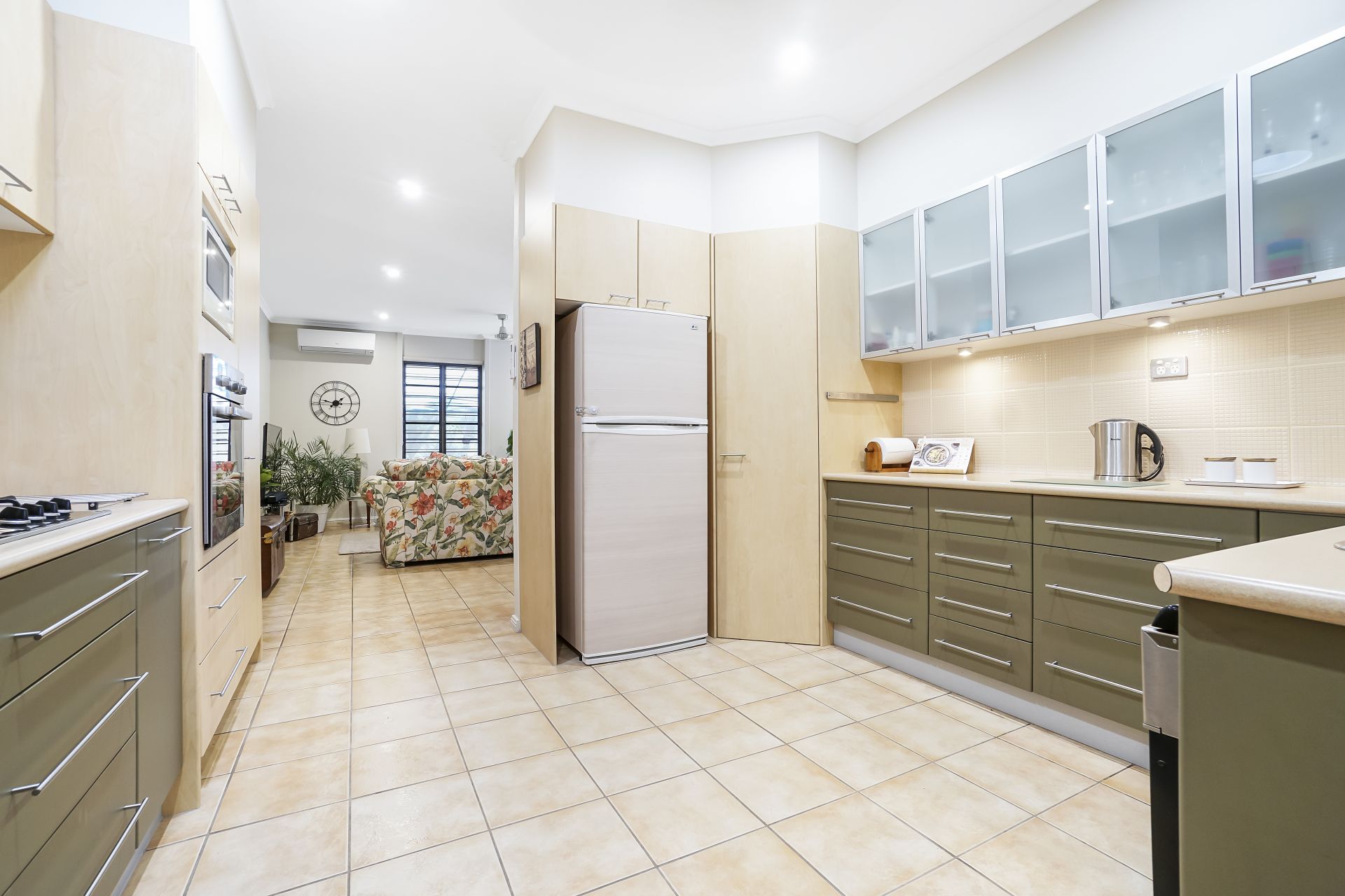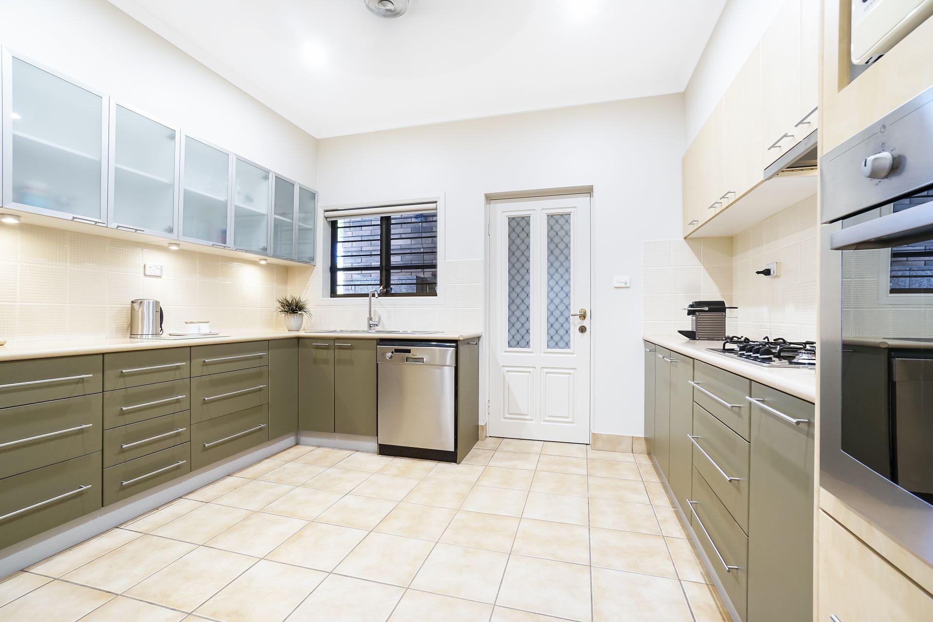 The kitchen is equipped with gas cooktop, electric wall oven and dishwasher. Storage includes a pantry and a combination of drawers and cupboards for all your culinary needs.