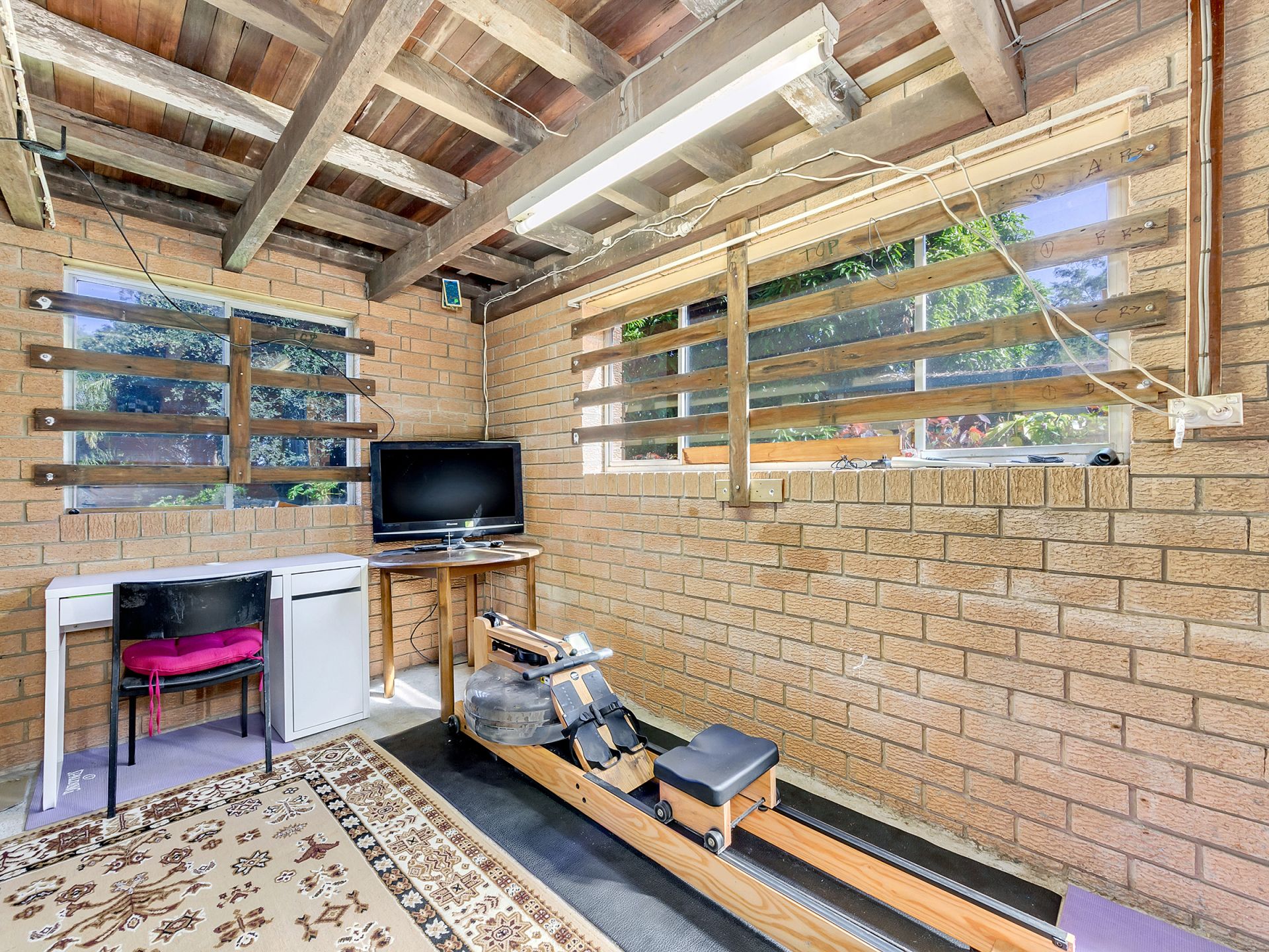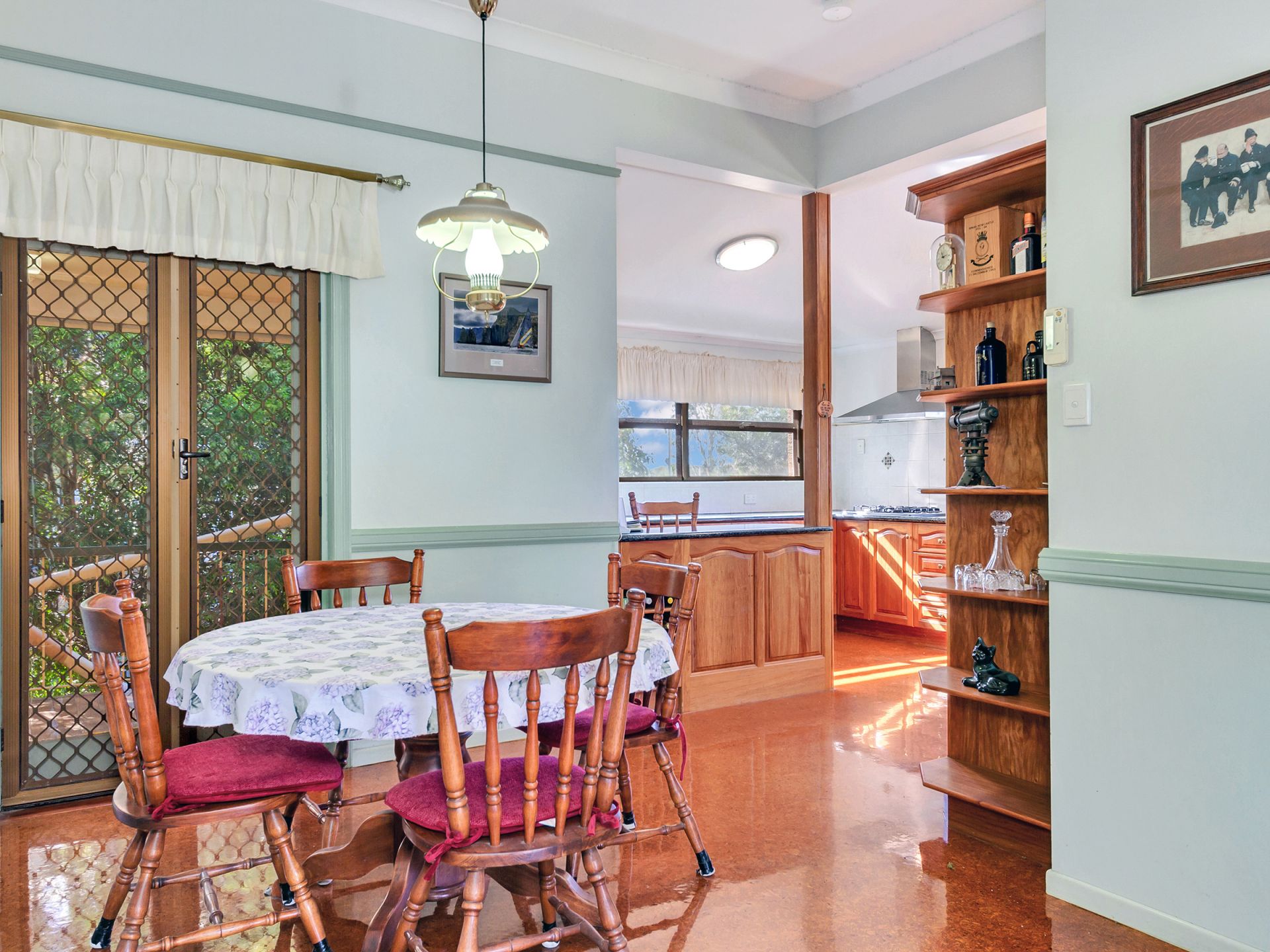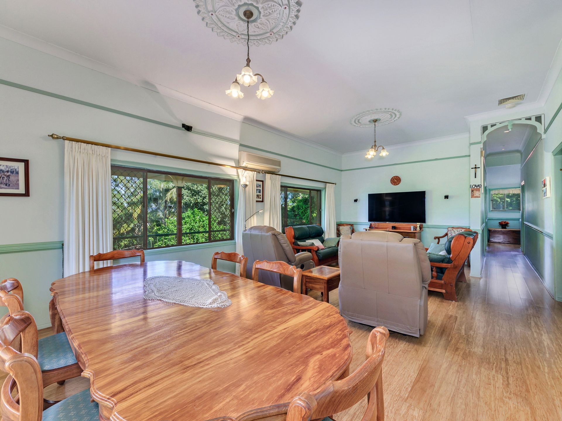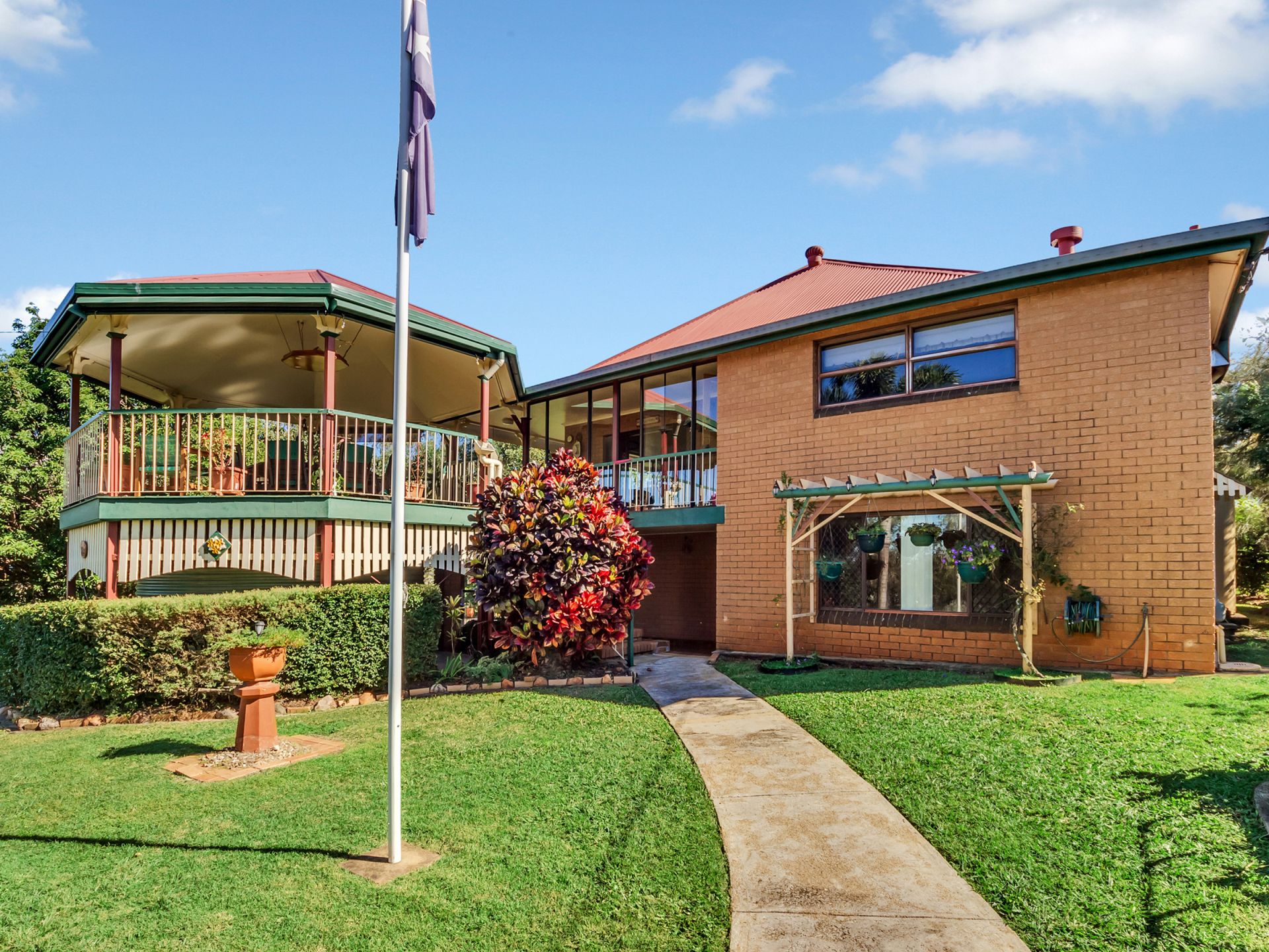 House is double brick with verandas on 3 sides. Has three bedrooms, two bathrooms, study, big lounge and dining upstairs. High VJ ceilings, natural ventilation and two ACU. Bamboo floors upstairs. Kitchen and breakfast area with cork flooring. Kitchen outfitted with gas cooktop, electric oven, dishwasher, large pantry and plenty of storage.