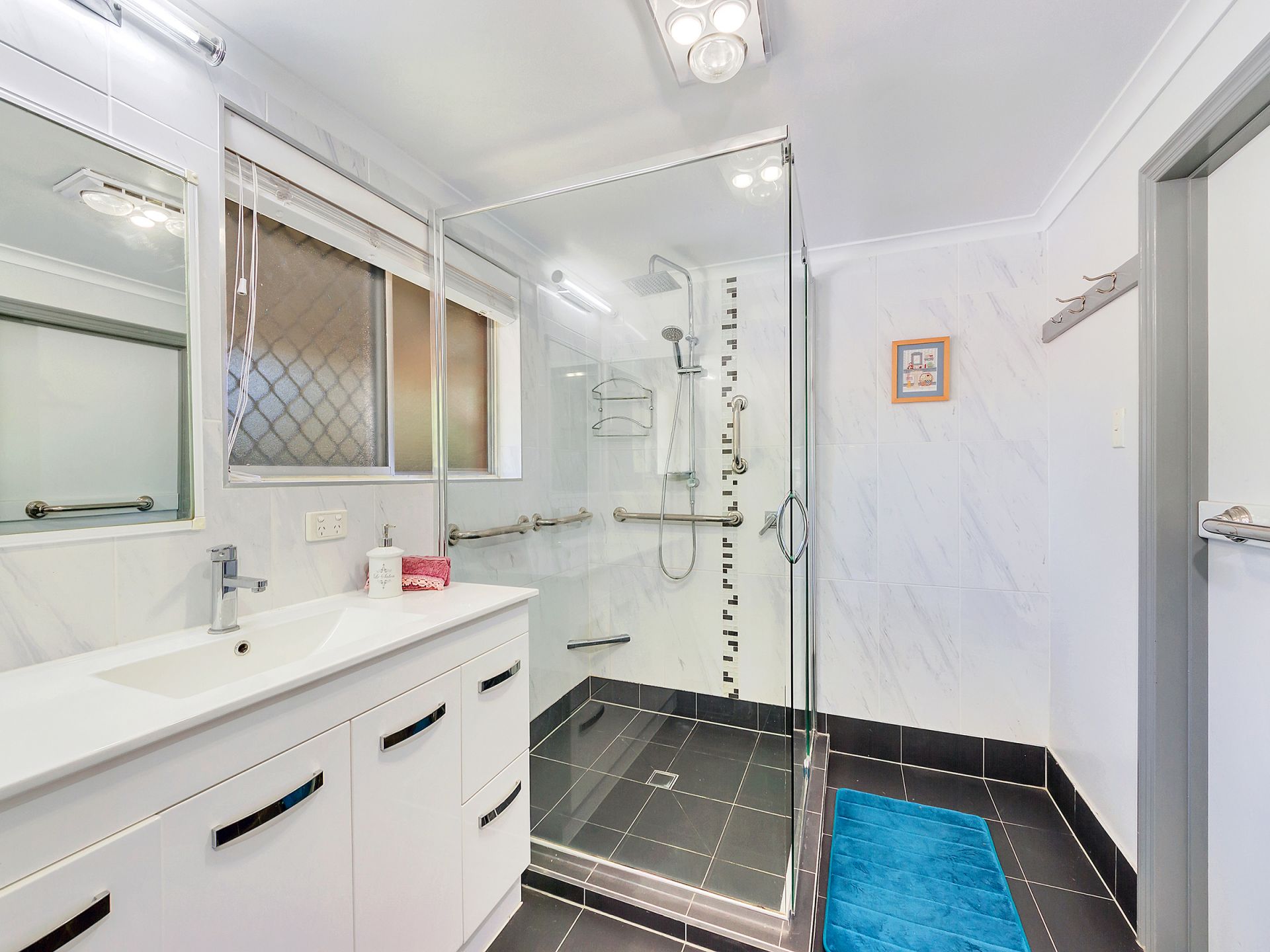 Office, rumpus, utility and storage downstairs with two car under house accommodation.