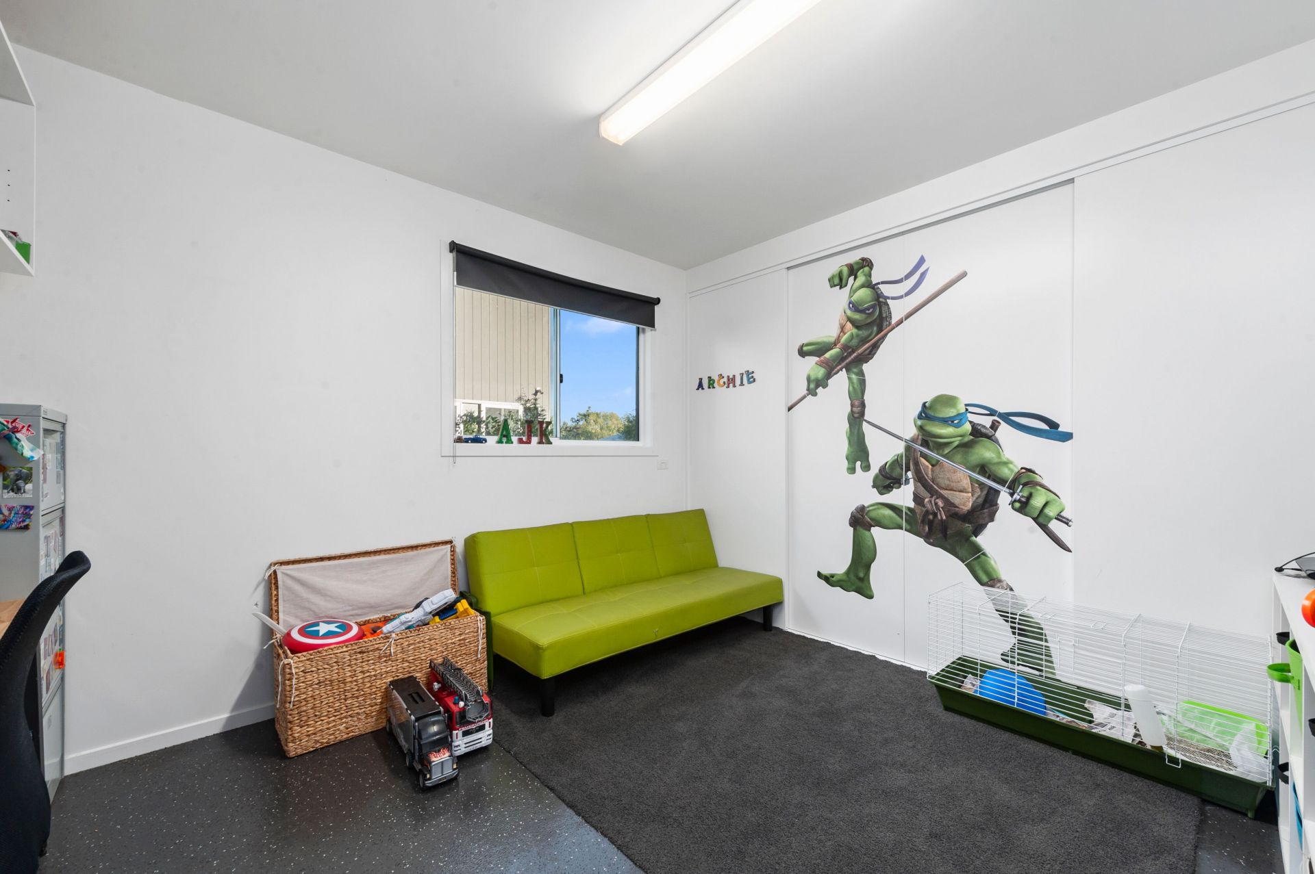 Main bedroom with BIR and sliding door to deck area also has access to the main bathroom. The second and third bedrooms both feature built-in wardrobes and the garage has been made into an office / play room area to provide extra room for the kids and plenty of storage.