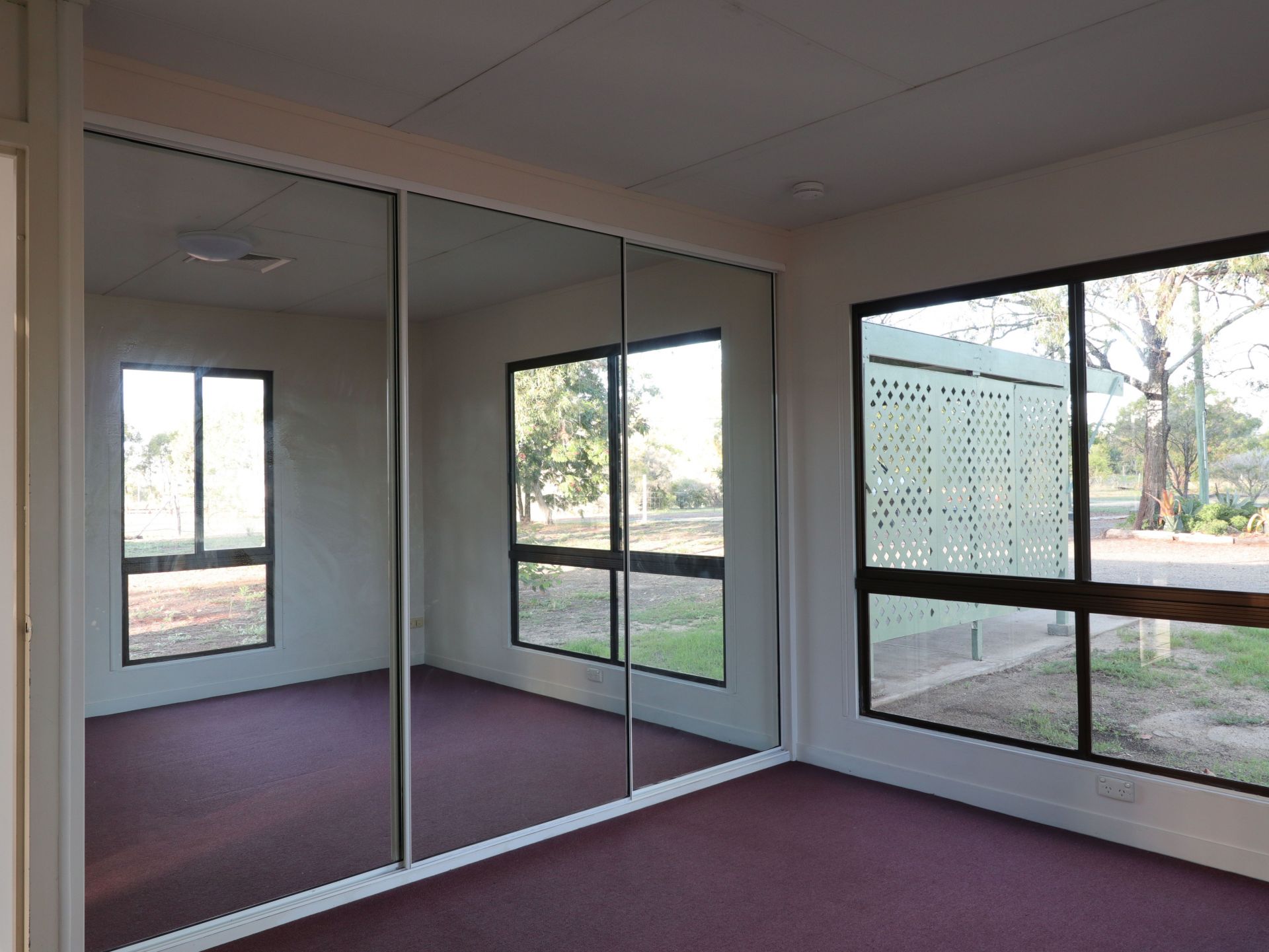 The main bedroom features a built-in wardrobe with mirrored sliding doors and new air conditioner, while the interconnecting second and third bedrooms are ideal for the kids or a home office.