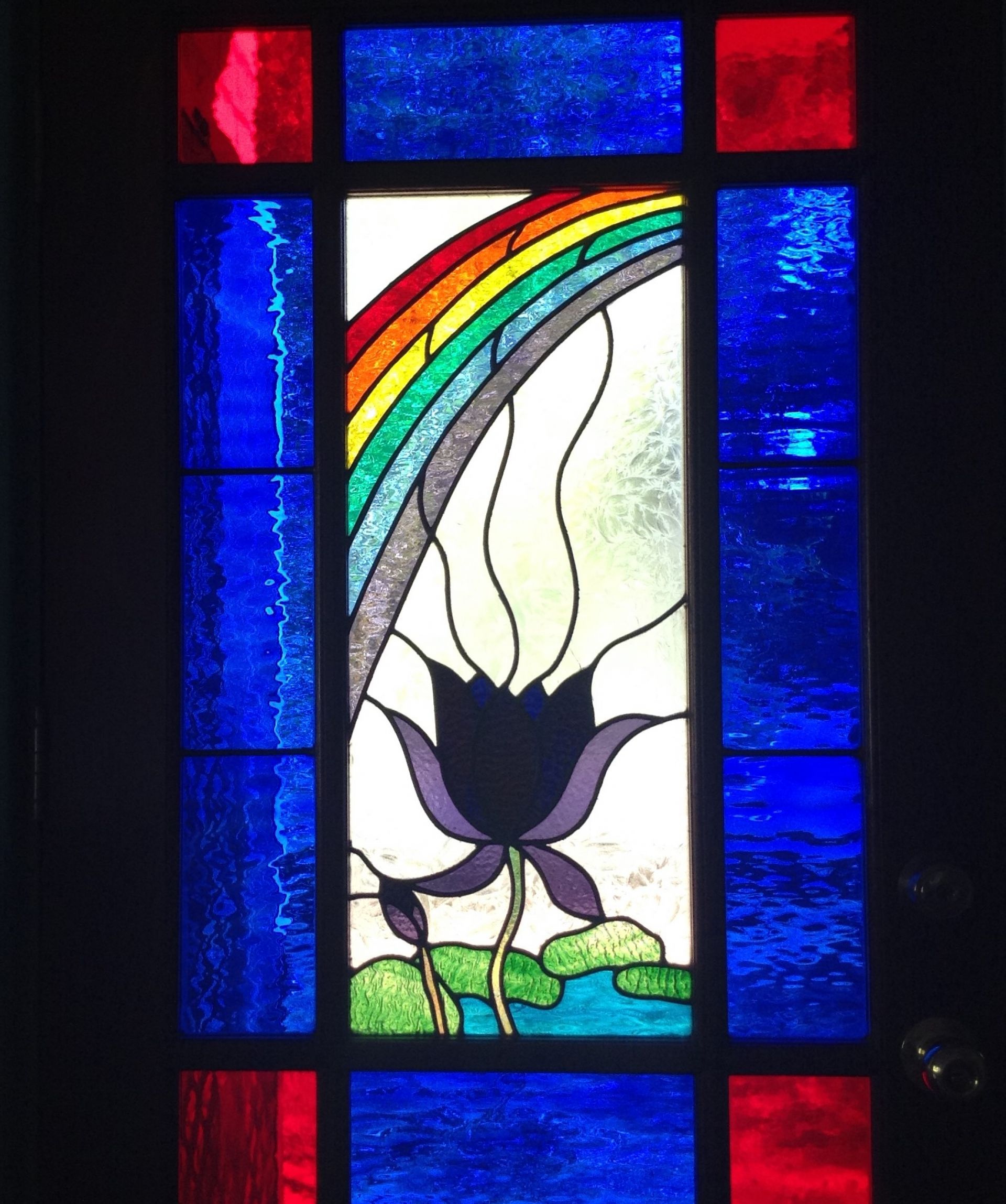 • Locally made Federation style Jarrah front door with stained glass artwork