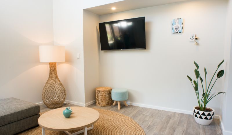 Louvre windows allow you to enjoy the ocean breeze and glass sliders open to your spacious deck and private turquoise plunge pool.