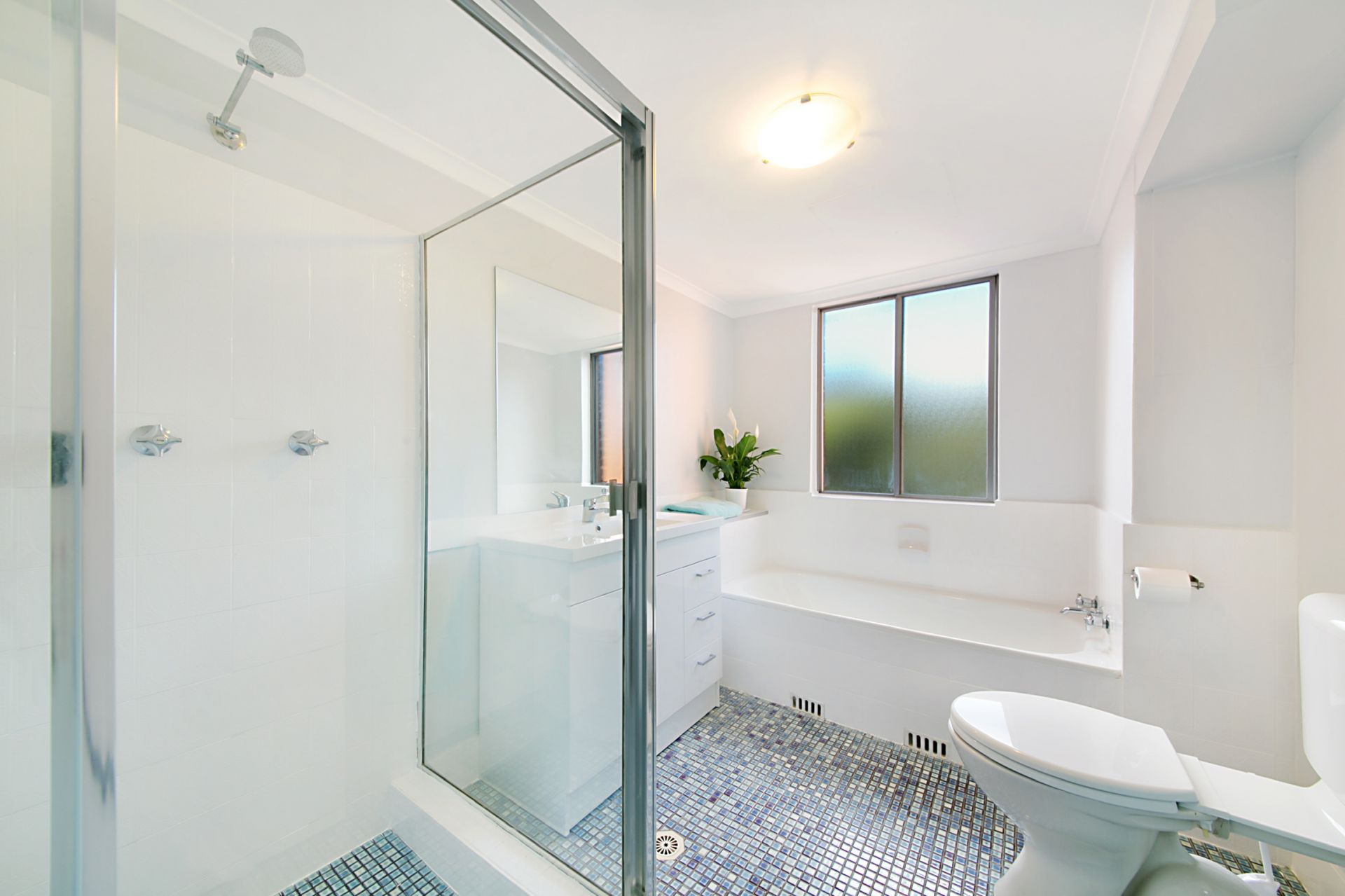 Rejuvenated bathroom with separate shower and bathtub