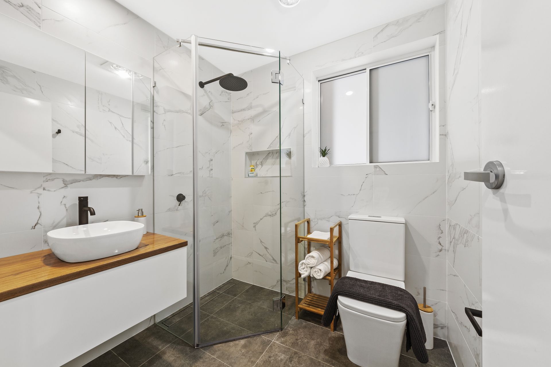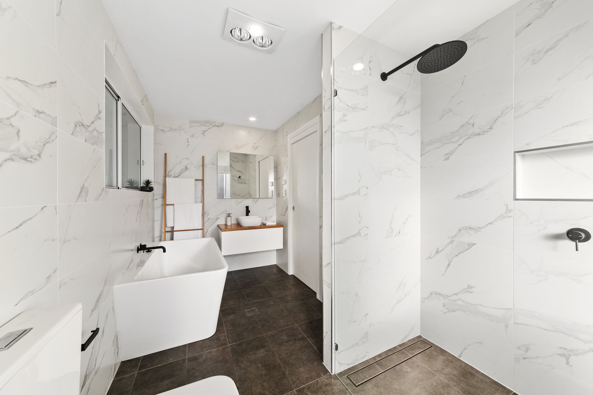 - Soothing neutral tones, plantation shutters and downlights throughout