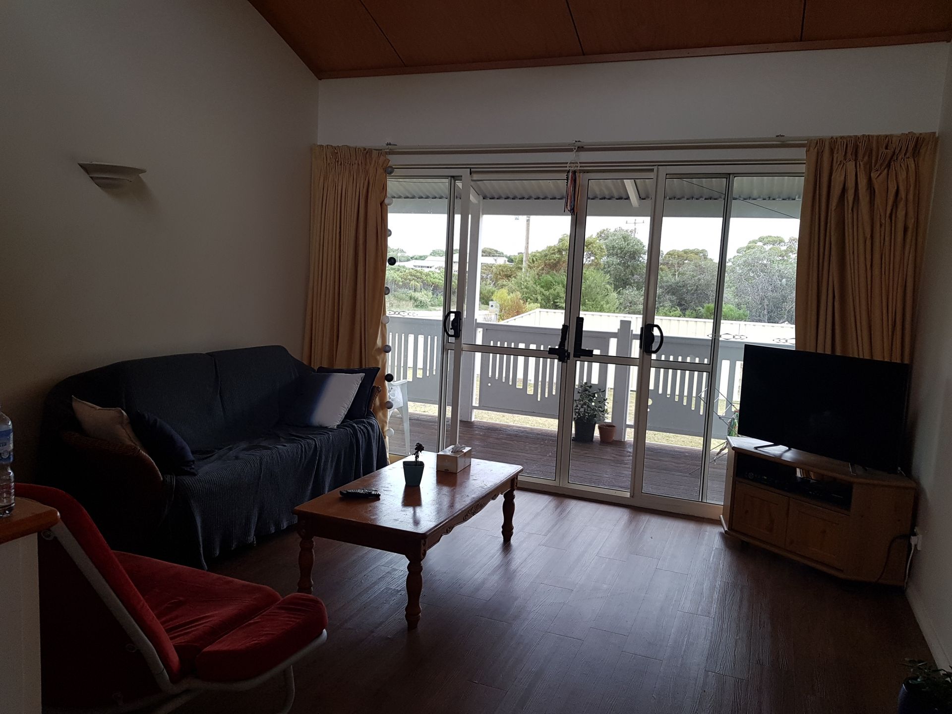 Architecturally designed and built by Fleetwood Homes (2004) this house offers some lovely finishes such as a rolling roof design, internal timber-lined ceilings and spa-bath. The two good sized bedrooms and open living area all have double sliding doors to the deck that runs the length of the building - just great for reading or a glass of wine at the end of the day!