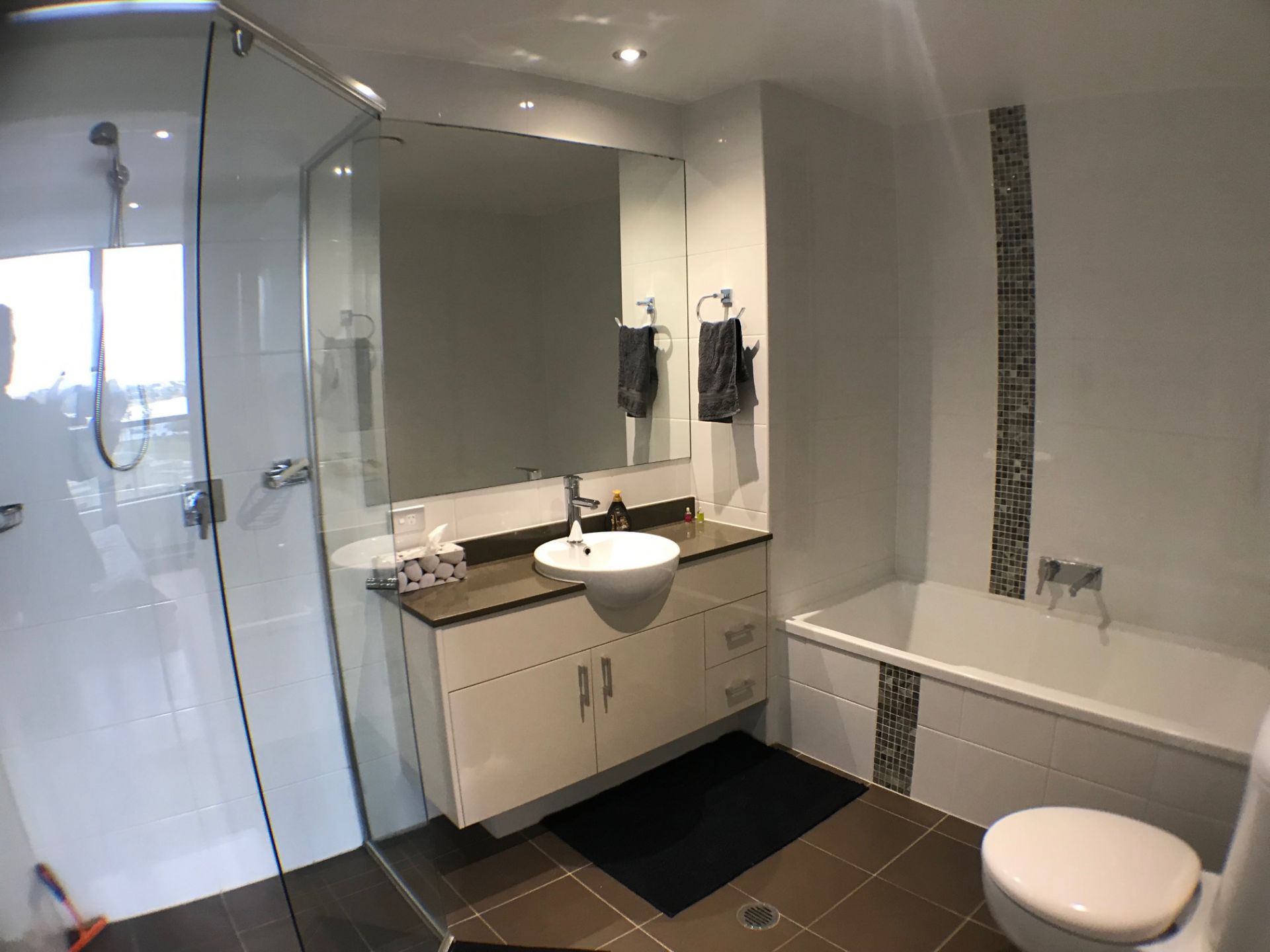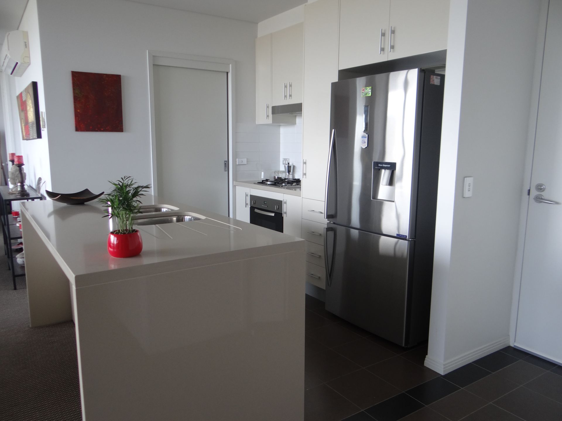 The apartment is fully furnished and has everything to just move in and enjoy! Modern kitchen with dishwasher, fridge, microwave, oven and stone benchtops with island bench and ample storage space.