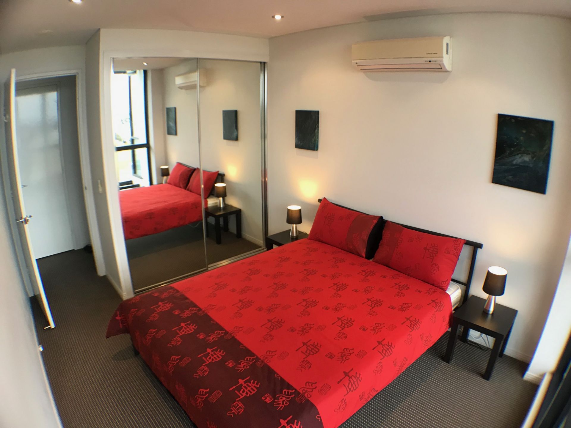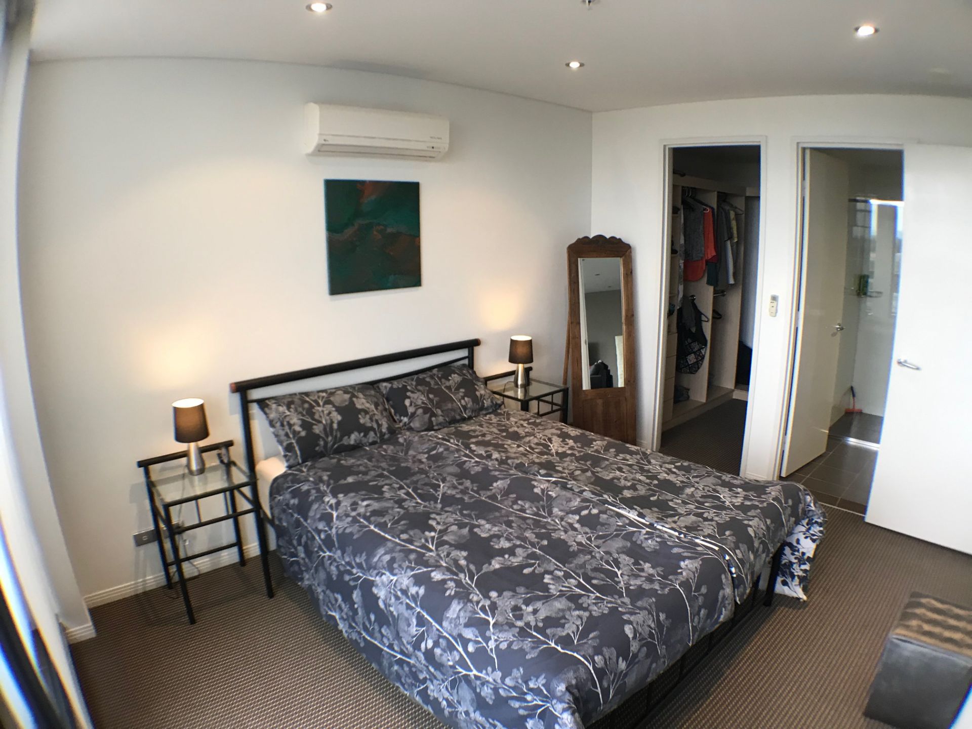 The second bedroom also includes a queen bed and provides a build in wardrobe. The bathroom with shower is adjacent.