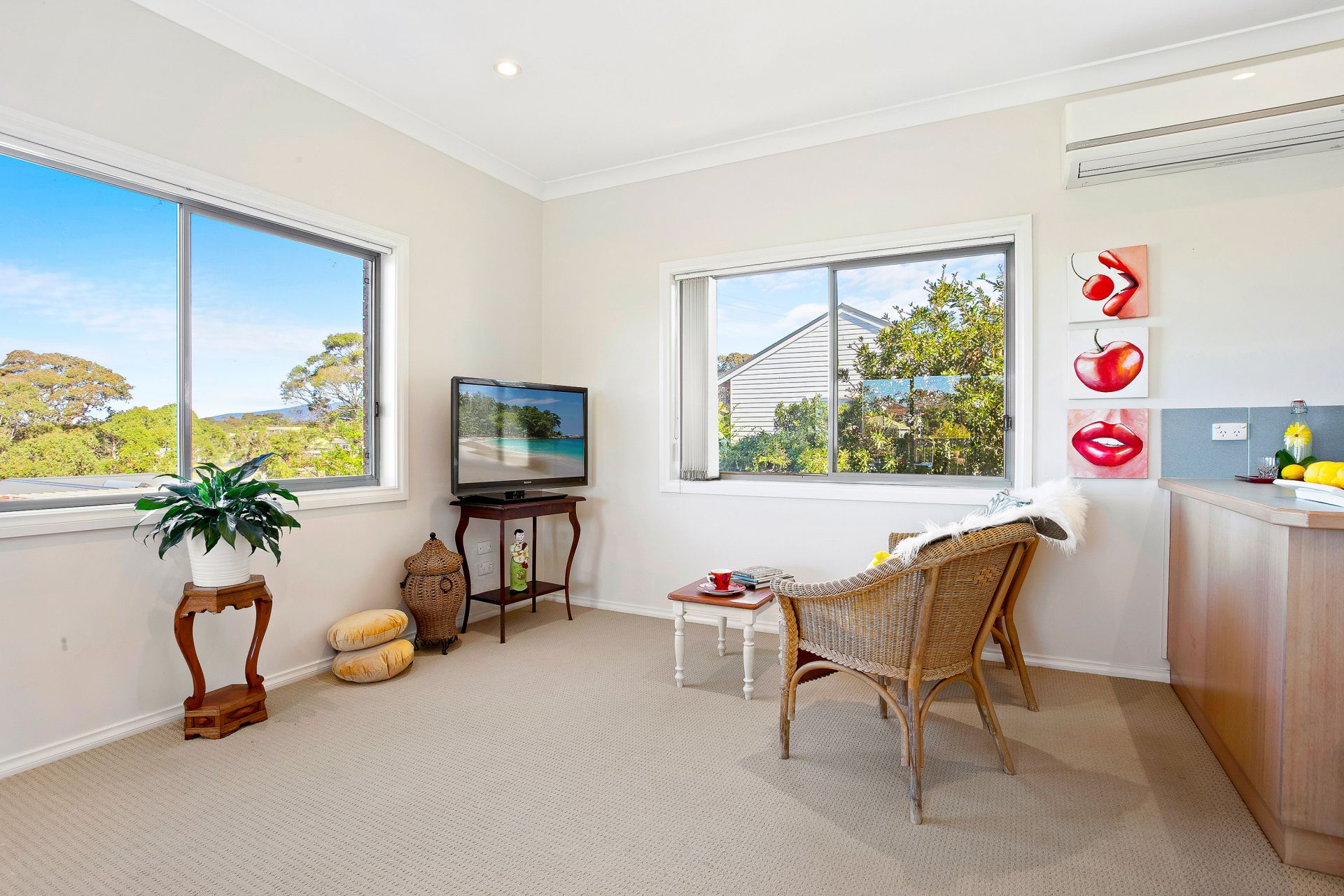 The separation of the 2 bedrooms and 2 bathrooms means privacy for you and your guests or if you are an investor, greater rental potential.