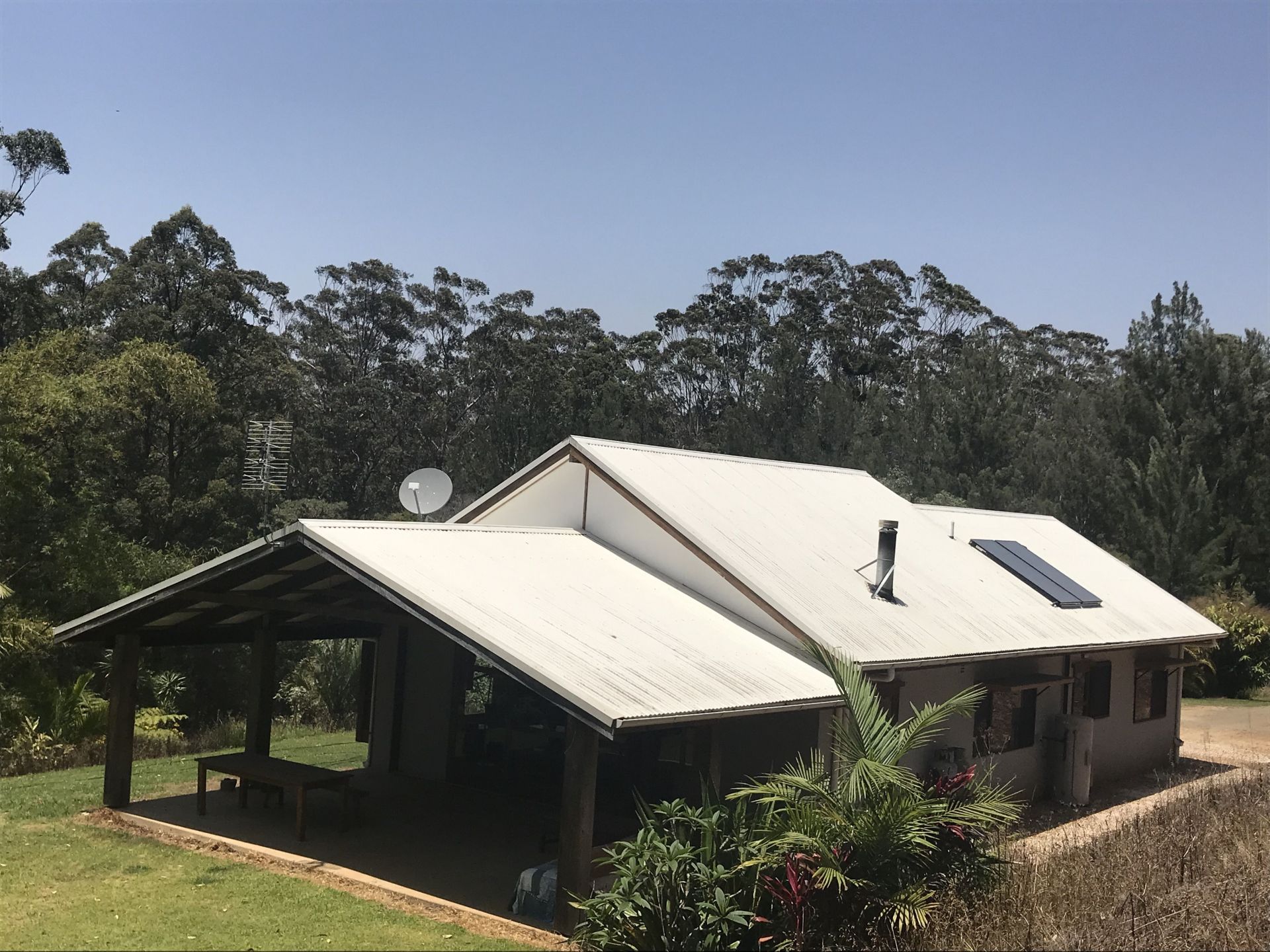 Has a 90,000L concrete water tank, solar hotwater, gas cook top, Asko electric oven, Miele dishwasher, satellite internet and a solid garden/work shed.