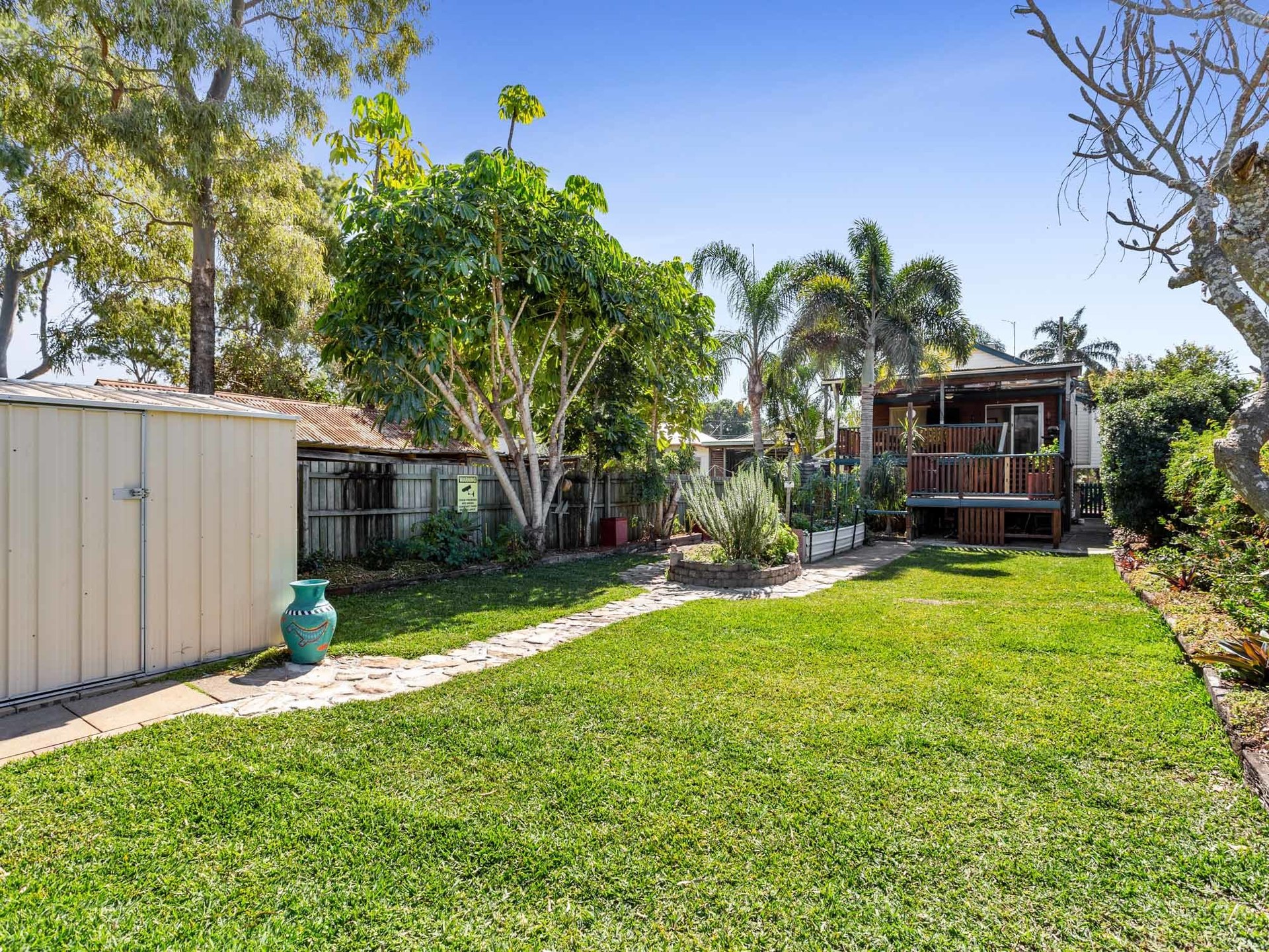 New buffalo lawn, new 3x6mt garden shed, landscaped, water views.