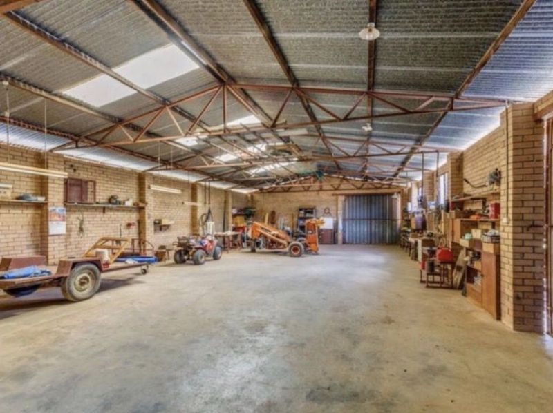 One of the Largest Brick and Stone Concreted Workshops with 3Phase Power on the current market with Lighting & Skylights offering many covered & open parking available for multiple use such as vehicles caravans trailers boats etc
